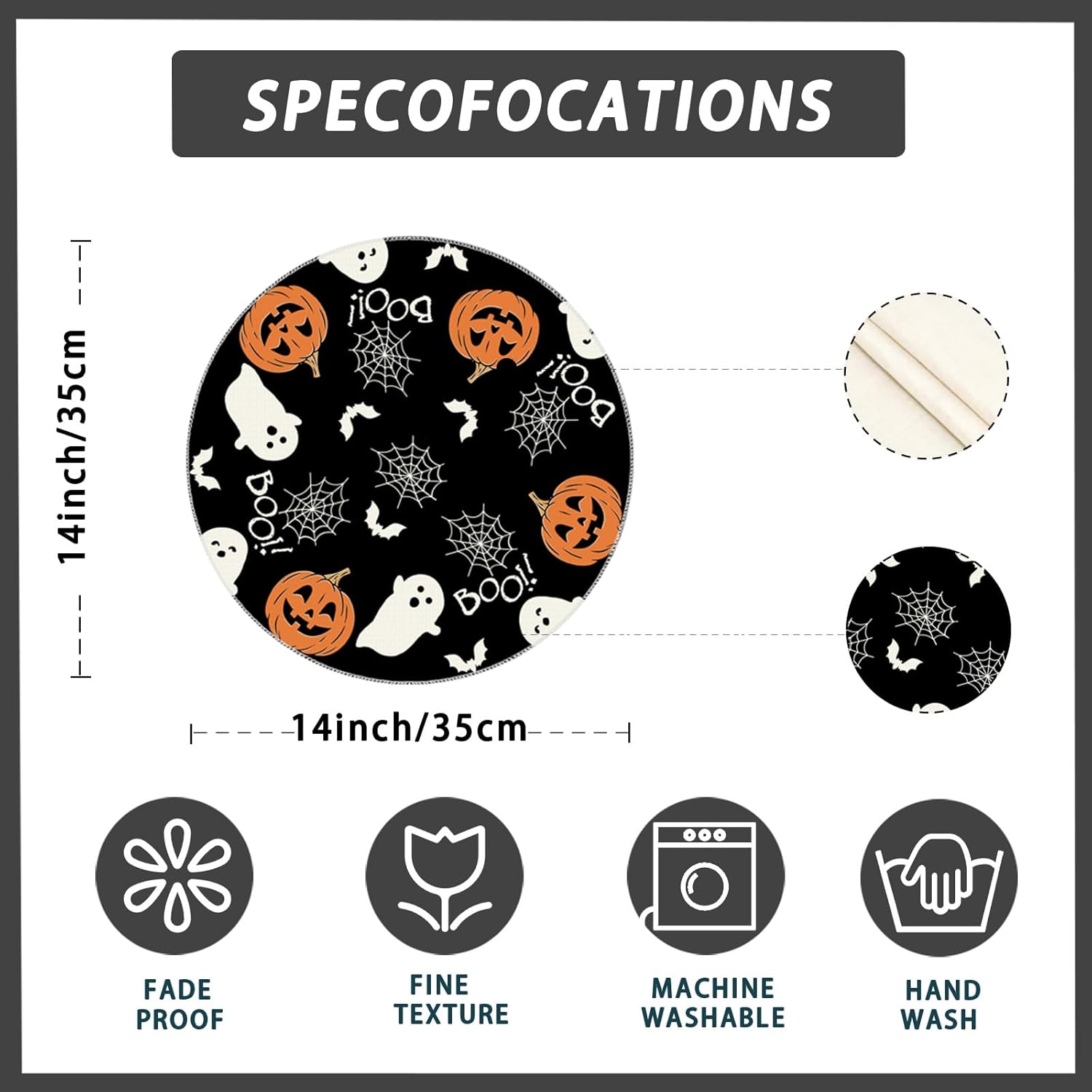 XCHI Boo Spooky Ghost Pumpkin Halloween Round Placemats Set of 4 Table Mats Table Decorations 14x14 Inch