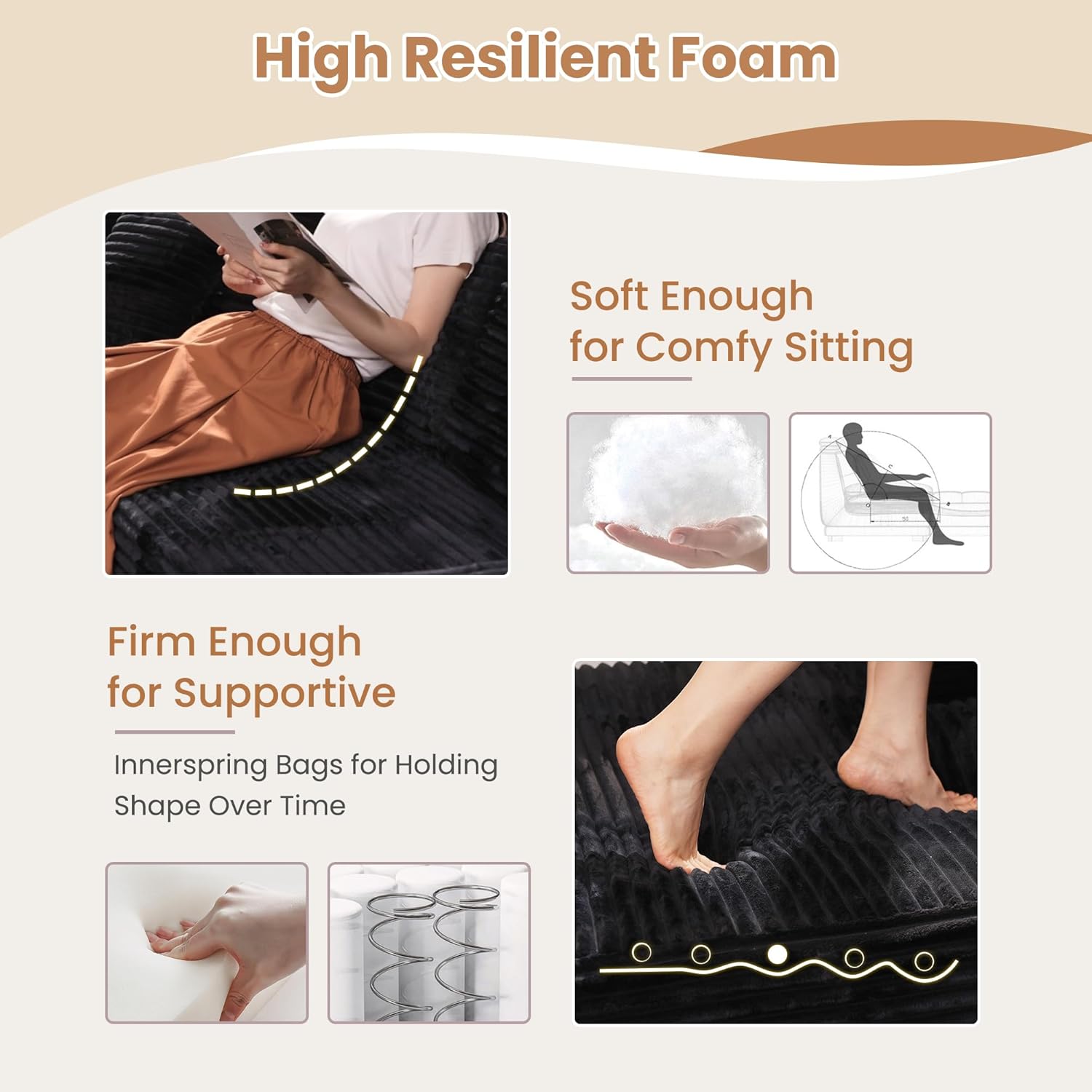 - Cloud Soft Foam: selected one-piece 16.5" extra thick ultra solft high resilient memory foam for great comfy seating, while with supportive inner spring bags inside to keep your posture and keep the couch itself in shape overtime