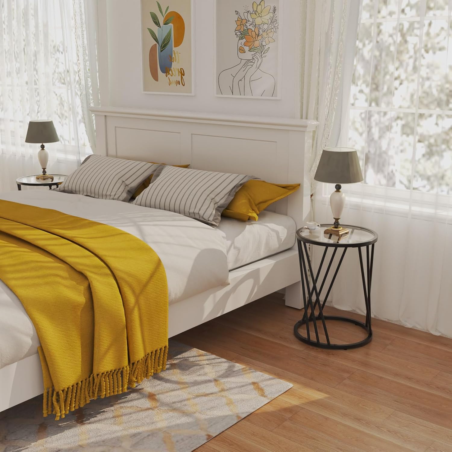 - 【Superior Quality】This modern side table features a durable 5mm shatter-resistant tempered glass top and sturdy metal legs, ensuring long-lasting use for everyday living. The round glass top is easy to clean and worry-free about sharp corners.