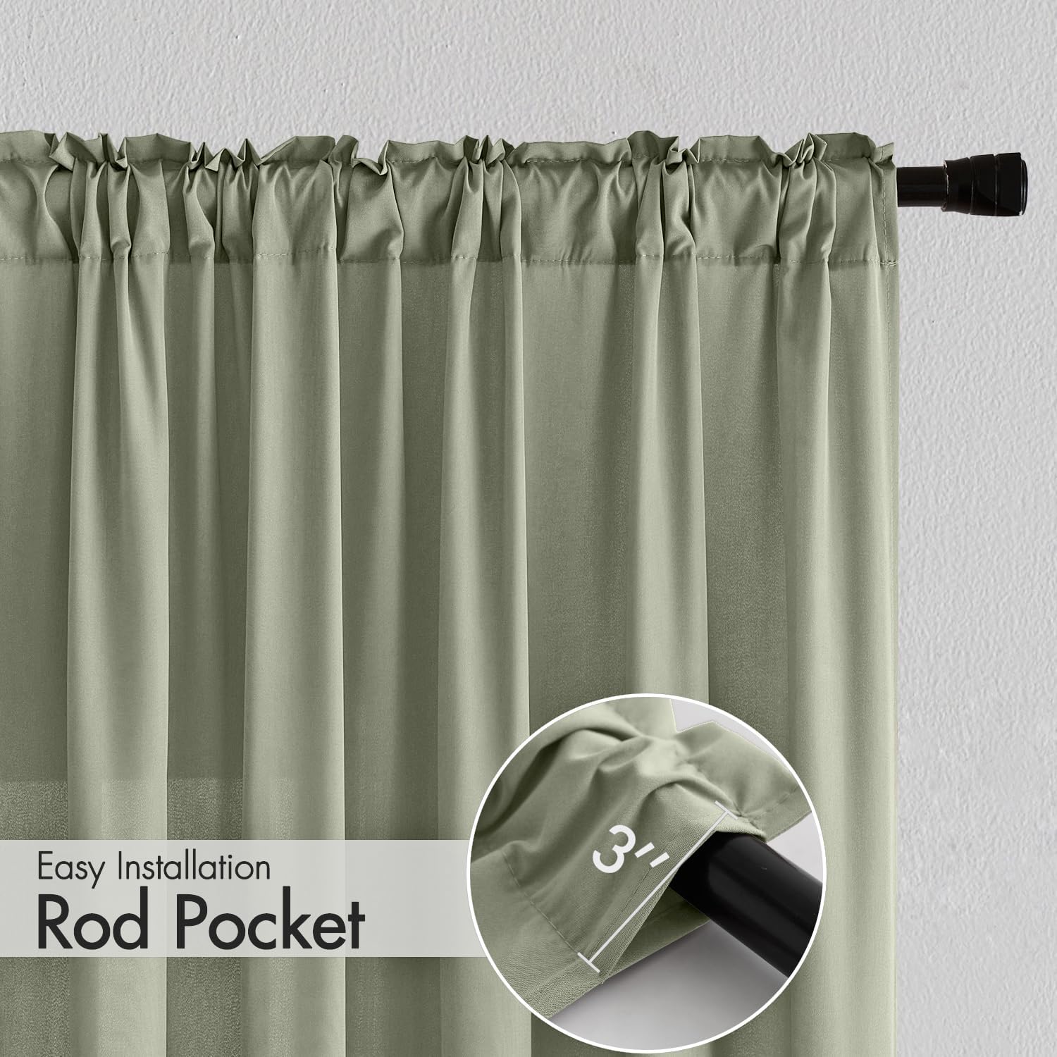 MIULEE Sage Green Privacy Sheer Curtains That Let Light in 90 Inches Long Non-See-Through Semi Sheer Curtain Light Filtering Window Curtains Drapes for Living Room Bedroom 2 Panels Set 42 X 90