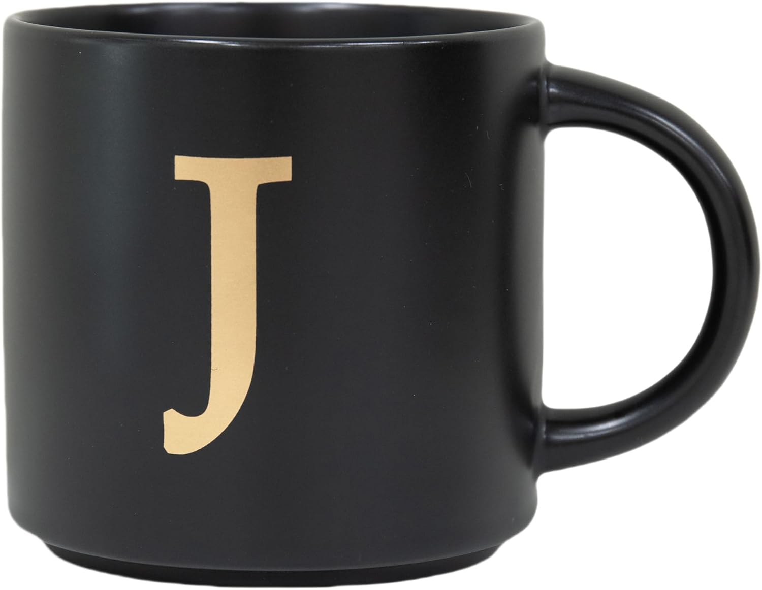 COLLECTIVE HOME - Monogram Ceramic Mugs, 15 oz Golden Initial Black Coffee Cups, Elegant Alphabet Tea Mugs, Elegant Personalized Mug with Gift Box, Unique Mug with Double Side Capital Lette (J)