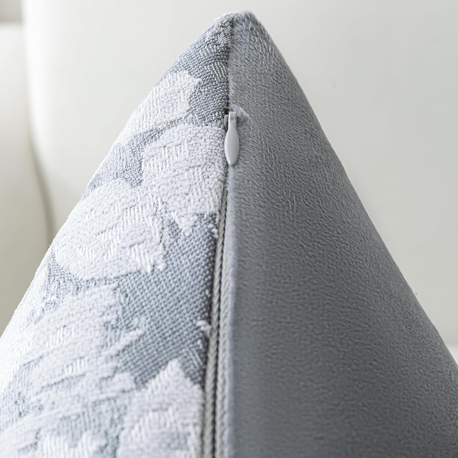 Jacquard Throw Pillow Covers 12x20 Inch Set of 2 - Vintage Floral Boho Pillow Cases with Botanical Pattern | Farmhouse Decor for Couch Living Room | Soft Textured Neutral Trio Slate Gray 12" x 20"