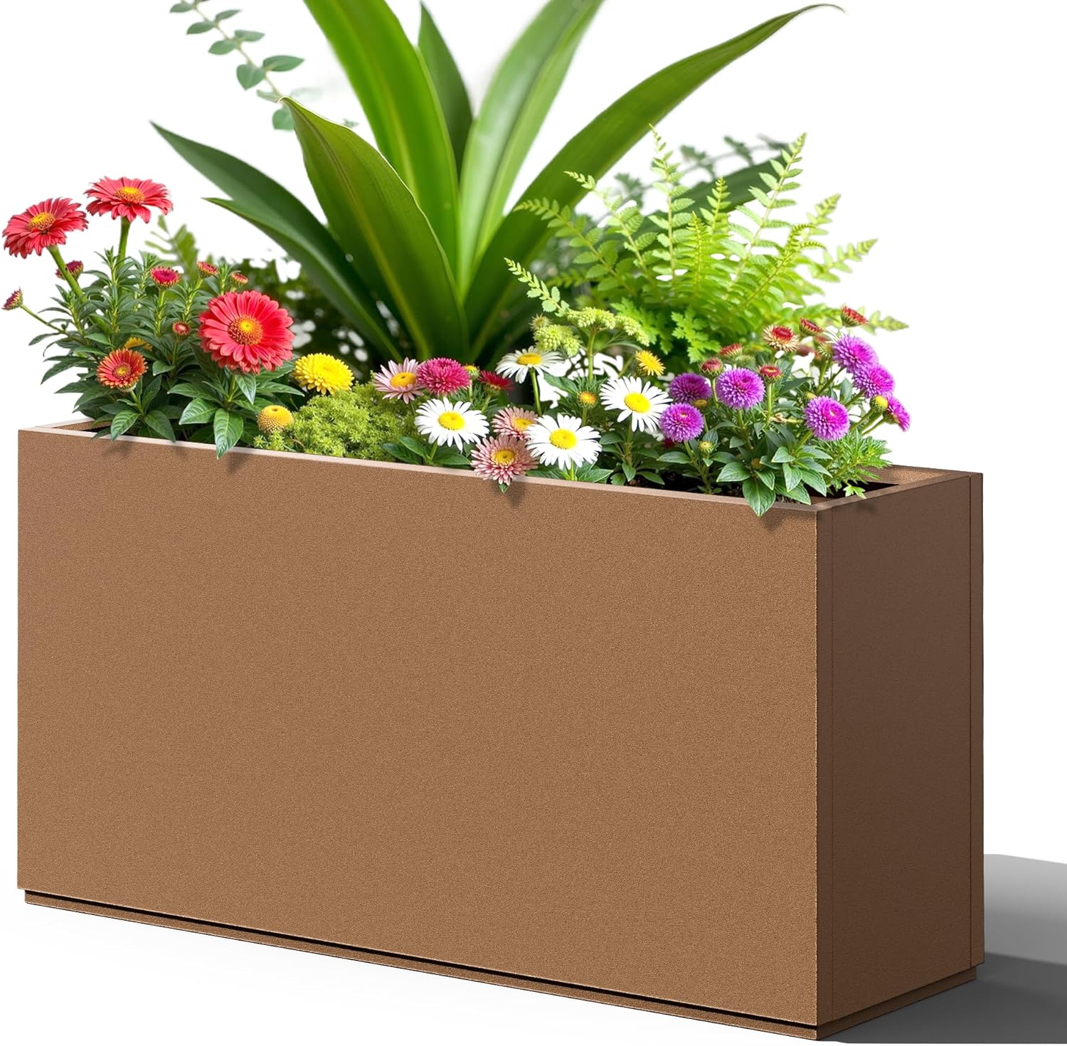 FENCY Metal Rectangular Planter Box, Large Planters for Outdoor Plants, Tall Planters for Outdoor Plants with Drainage Holes (32" L x 10" W x 16.3" H,Brown)