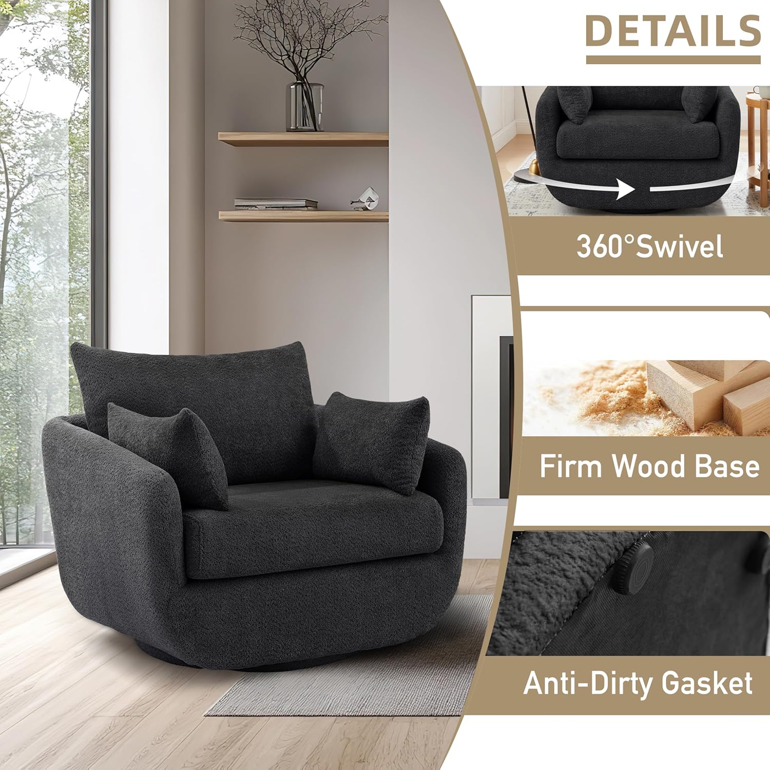 360° Swivel Accent Armchair, 39.3" Oversized, Sherpa Boucle Fabric Sofa Chair with Removable Back & Arm Pillows, Swivel Chair with Cozy Soft Padded, No Assembly Required (1, Dark Gray)