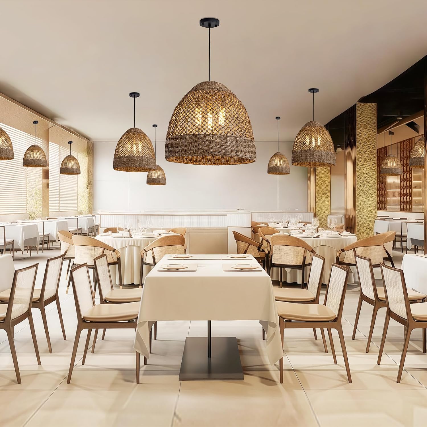- 【Excellent Design】Natural water plants rattan weave craft, the pendants are made of natural materials. The lights are hand woven with by rattan craft superb skills Seagrass Rattan artists. Decorated with classic tropical style elements, creates a wonderfully new look