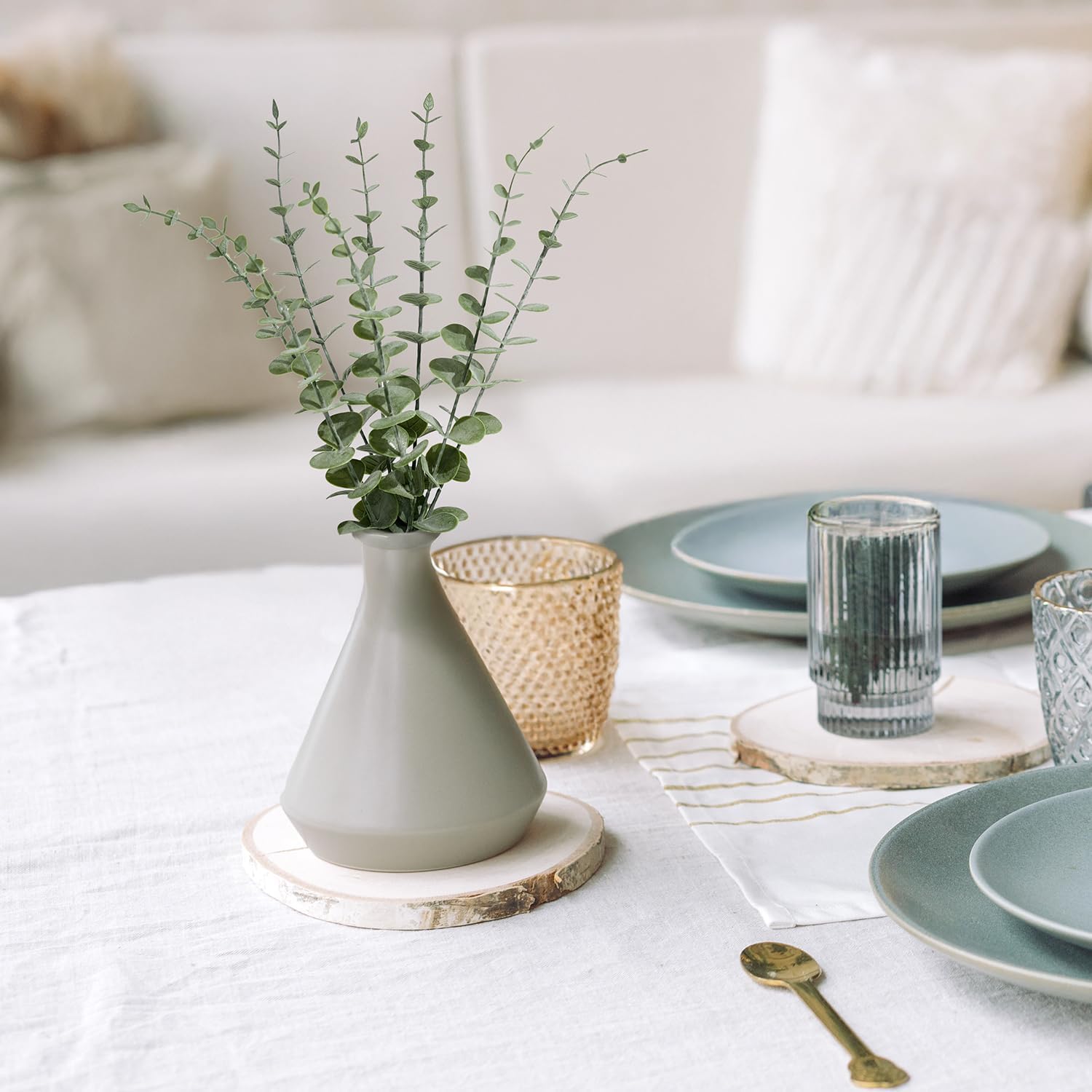 - Suitable for Any Occasion: The eucalyptus stems can be used alone in vases to create a minimalist look or mixed with fresh and dried flowers. Ideal for home decor, wedding bouquets, table centerpieces, farmhouse arrangements, seasonal wreaths, or party backdrops. Whether it’s Christmas, baby showers, or a cozy dinner party, these fake eucalyptus stems complement any style