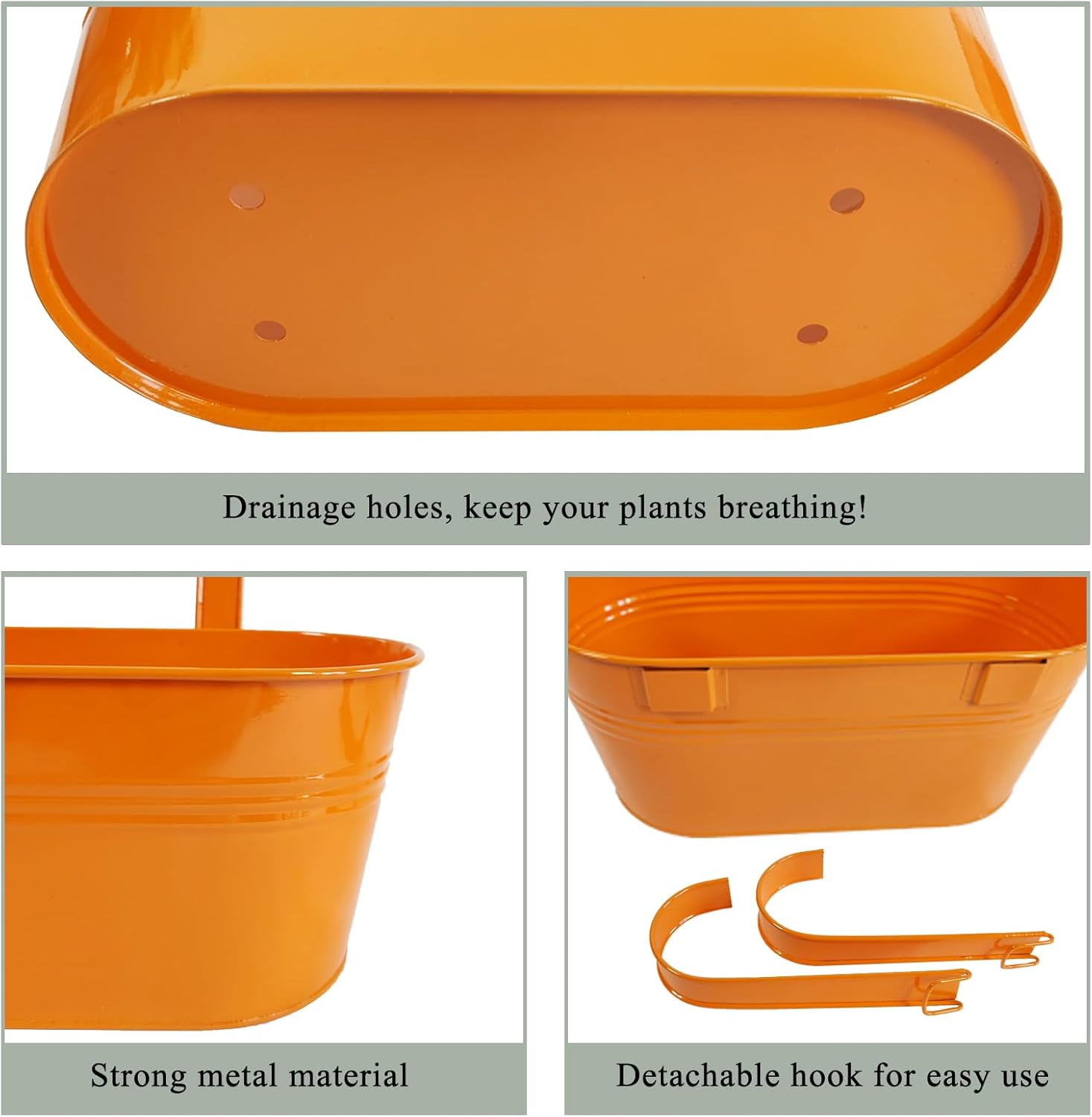 6 Pcs Railing Planter, 10" Metal Hanging Flower Pots for Outdoor Balcony Rails, Fence Pot Hanging Plant Holders with Detachable Hooks for Garden Patio Yard Decor (Multi-Color, 6Pcs)