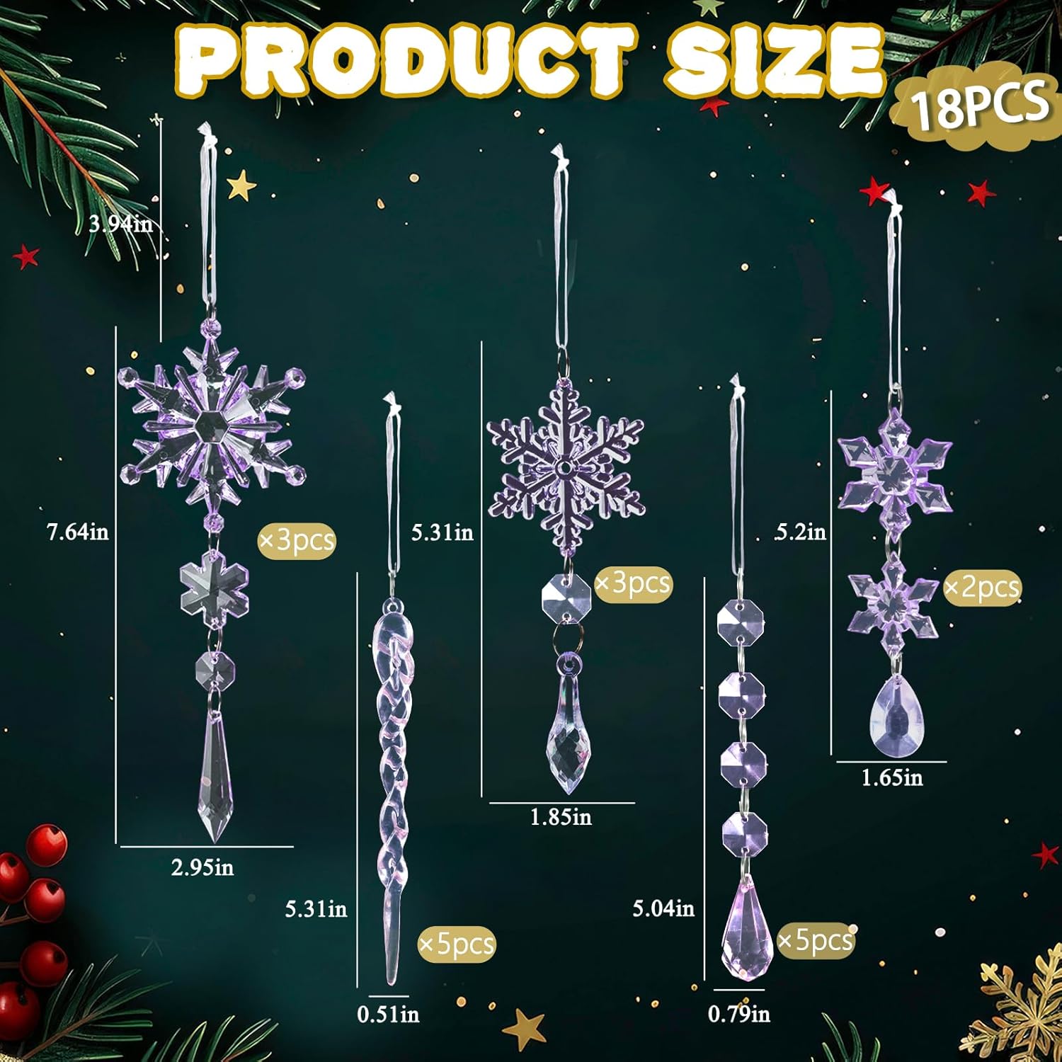 - Package: You will receive a great value pack of 18 pieces purple acrylic Christmas ornaments set in 5 styles, including 8pcs unique designed snowflakes ornaments (5.2", 5.3" and 7.64"), 5pcs 5.3" crystal icicles ornaments and 5pcs 5" bead garlands.