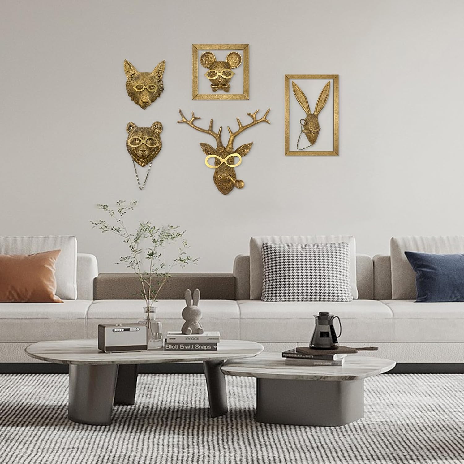 - Easy to install : The antlers and chains of this product are removable. In order to avoid damage to animal parts during transportation, this product needs to be easily installed by the buyer;The rabbit's ears and the deer's antlers, glasses and pipe need to be assembled and can be easily installed using the glue we provide, if you find that the rabbit's ears don't fit completely into the holes, please swap the two ears and try again.