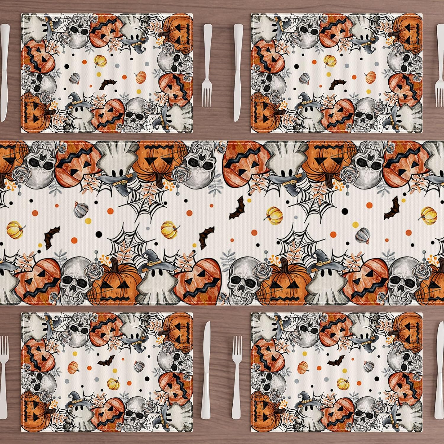 XCHI Spooky Skeleton Ghost Pumpkin Halloween Placemats Set of 4 Table Mats for Party Home Kitchen Dining Table Decorations 12x18 Inch