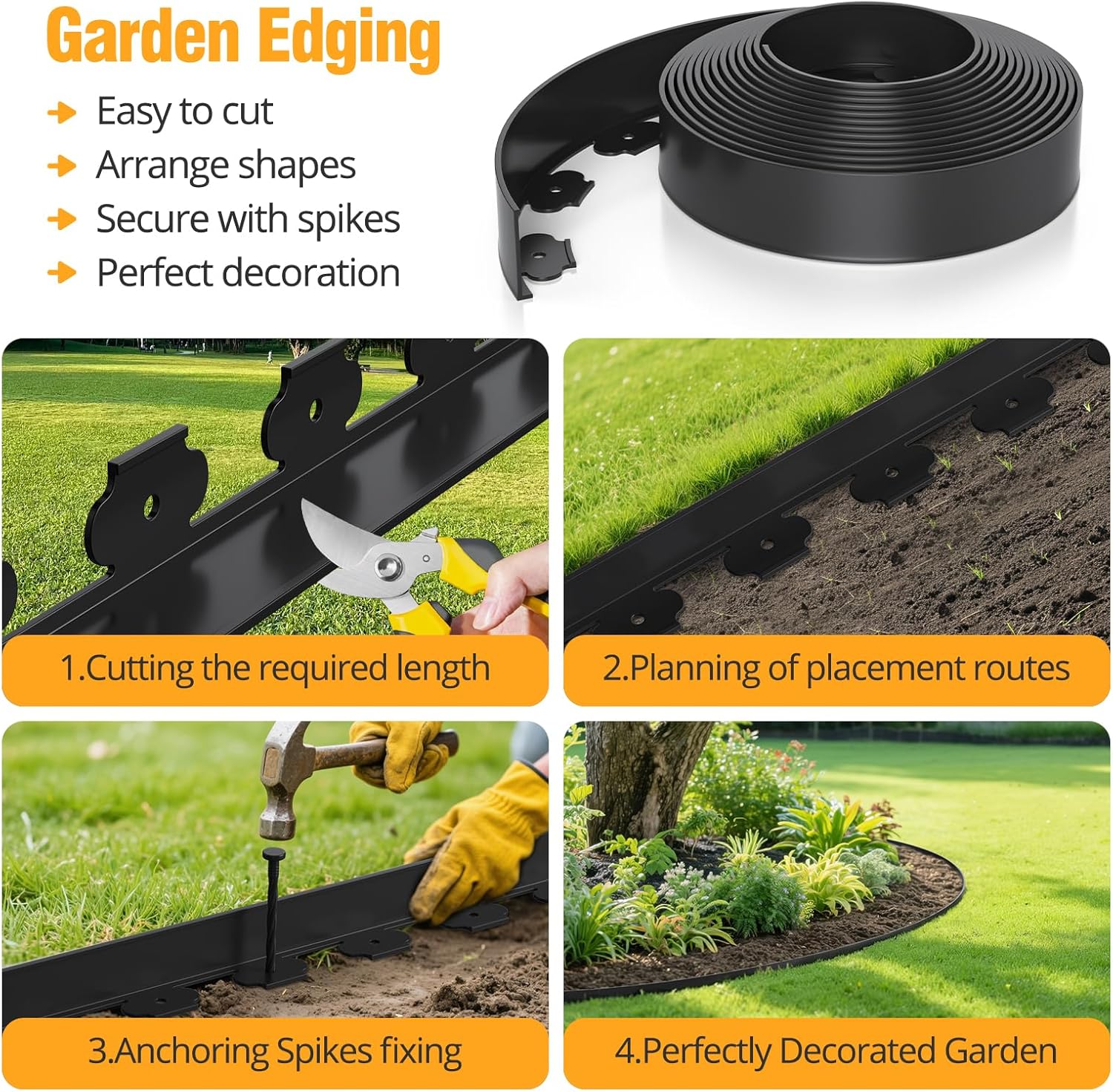 - Roll of 40 FT Garden Edging + 40 Pcs Anchoring Spikes