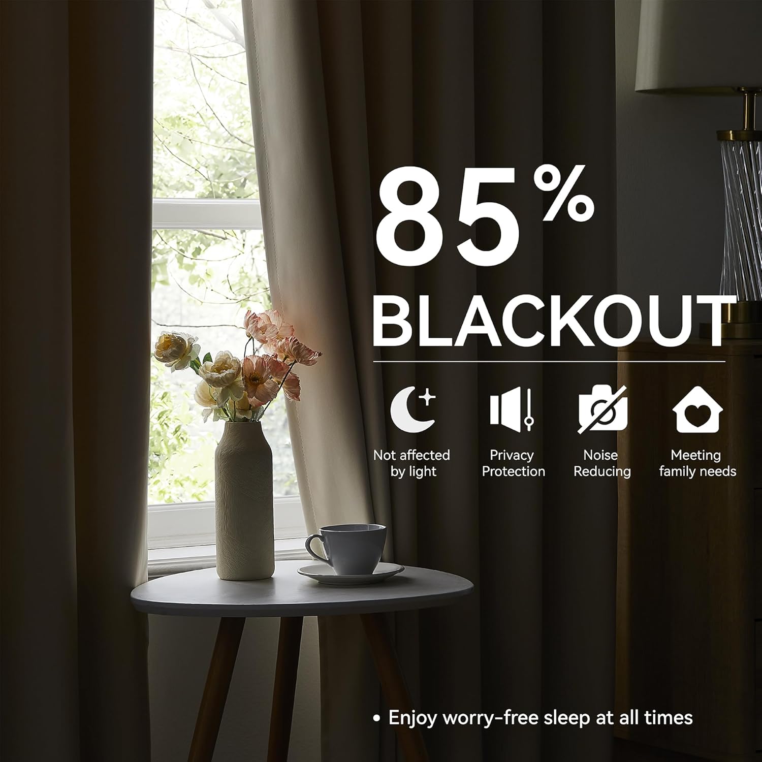 - Room Darkening & Thermal Insulated:Crafted to block out up to 85%–95% of sunlight, these blackout curtains help darken the room, reduce glare, and provide enhanced privacy—ideal for napping, movie nights, or light-sensitive settings. The thermal insulation offers excellent energy saving performance by keeping rooms warmer in winter and cooler in summer. These curtains also provide sound dampening benefits, helping to reduce outside noise for a more peaceful environment.