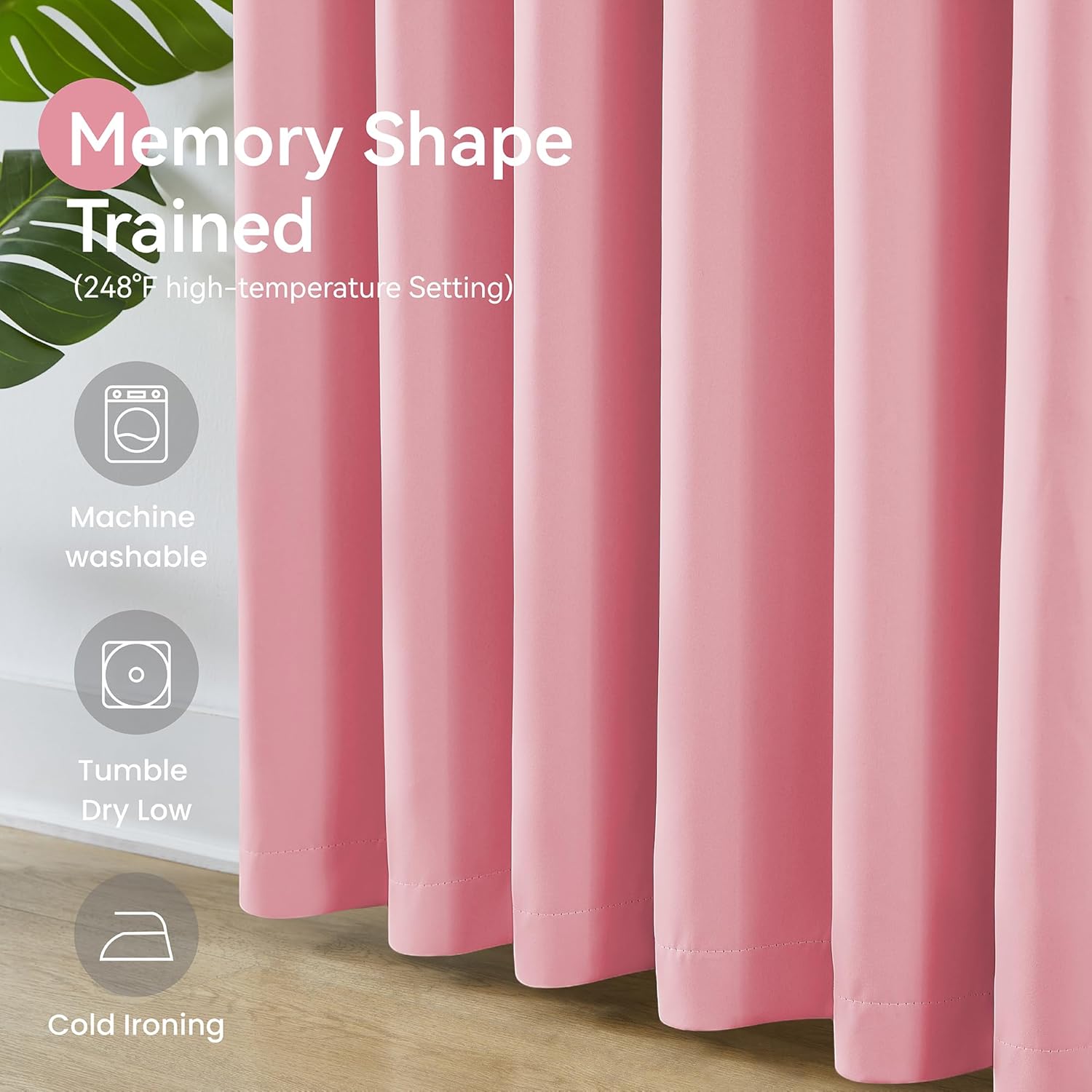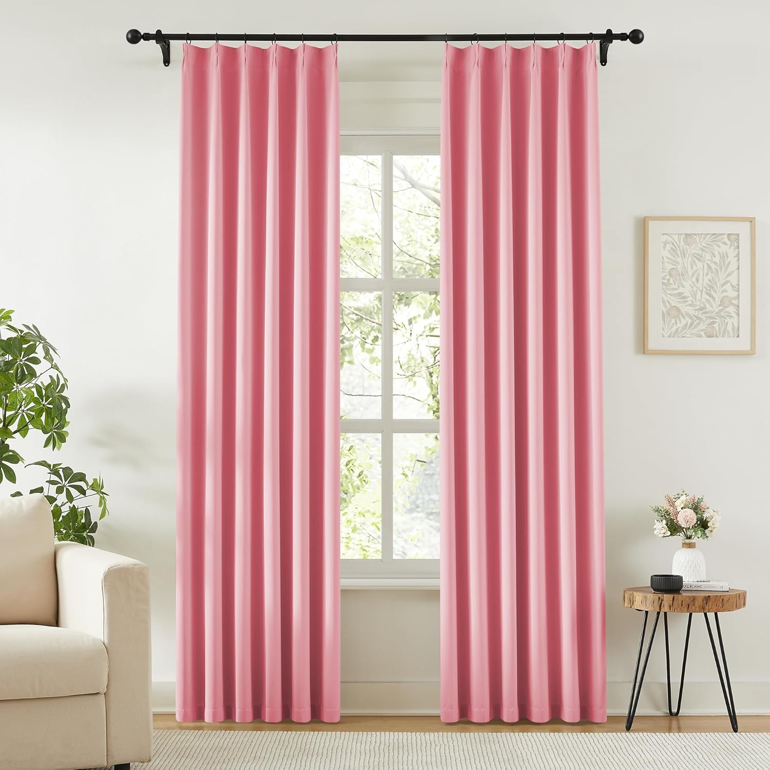 KangBang Rose Pink Blackout Curtains for Girls Bedroom 2 Panels, Light Blocking Pinch Pleat Vertical Drapes with Hooks for Nursery, Solid Privacy Elegant Modern Decor,40x84 Inch