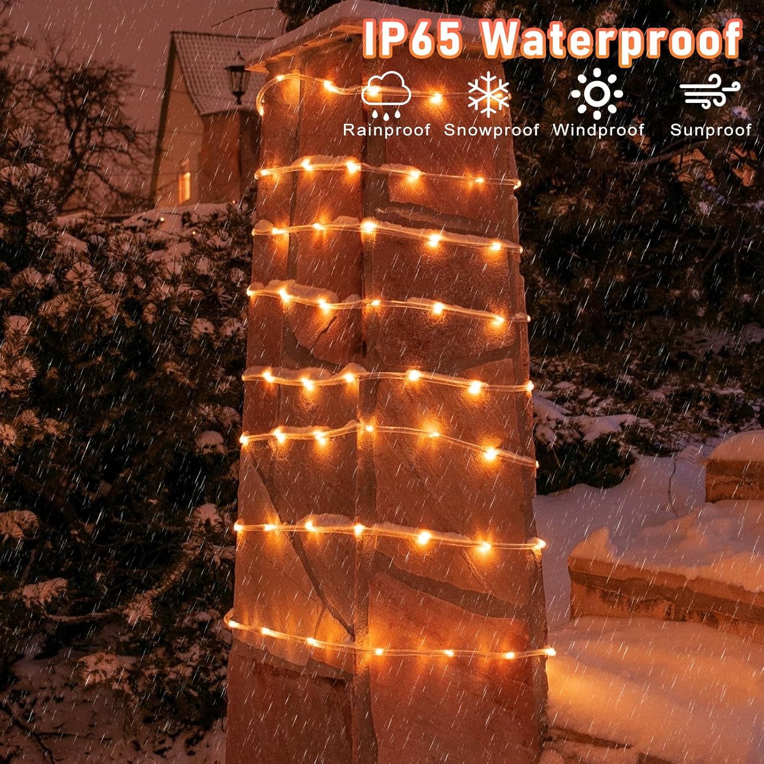 - ăUpgraded Connectable Rope Lightsă- Our rope lights for outside feature a 100ft lighting length with a 6.6ft lead wire, total 106.6ft length. LED bulbs are spaced 4 inches apart to provide bright and soft lighting. The Halloween lights can be connected end to end up to 4 sets, long enough to meet your creative lighting decor needs.