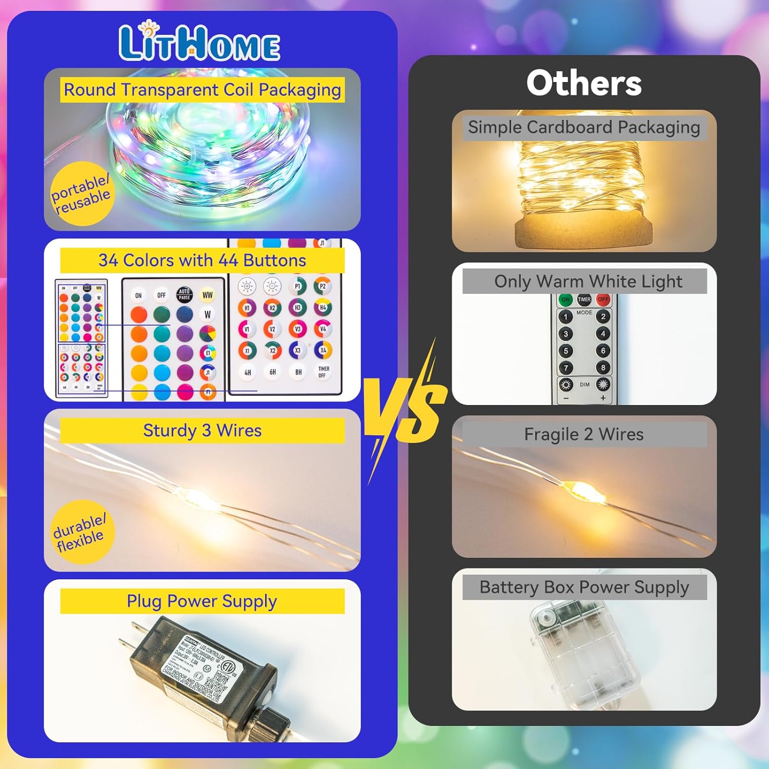 - Color Changing Fairy String Lights â Your Ultimate Mood-Setting Companion : Whether enhancing cozy bedroom moments, illuminating wedding celebrations, powering up parties, adding spooky Halloween charm or sparkling through Christmas festivitiesâthese starry twinkle lights instantly elevate every scene. Immerse yourself in the mesmerizing magic of ever-shifting hues â where every moment glows with possibility!