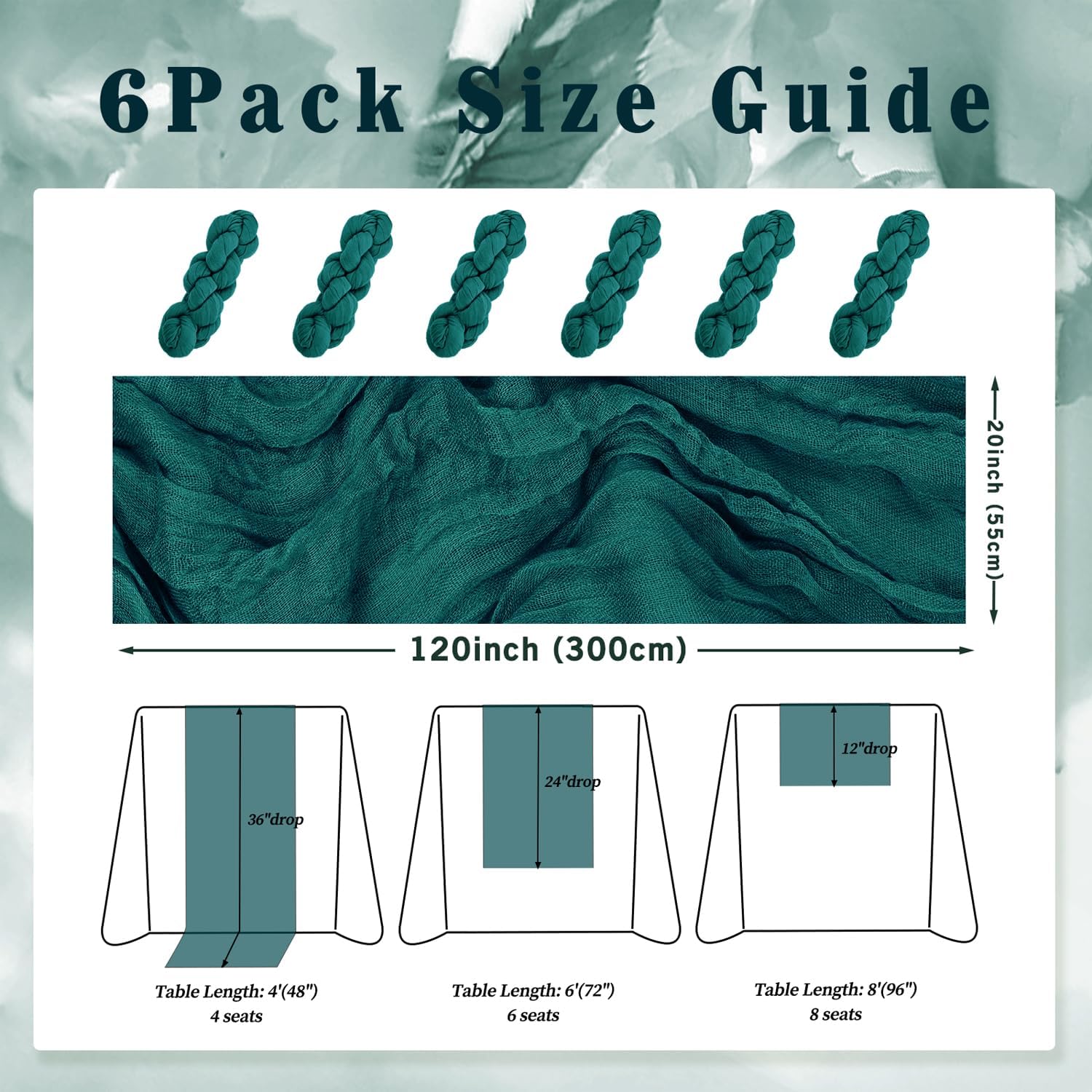 6 Pack Teal 10FT Cheesecloth Table Runner Rustic Gauze Cheese Cloth Table Runner for Wedding Bridal Baby Shower Table Decorations Boho Fabric Sheer Birthday Party Table Decor 20 x 120 Inch Long