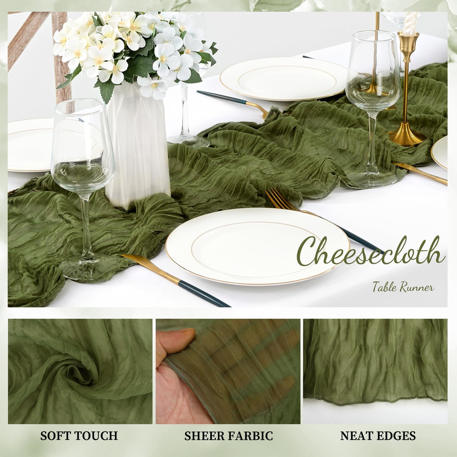 20 Pack Olive Green 10FT Cheesecloth Table Runner Rustic Gauze Cheese Cloth Table Runner for Wedding Bridal Baby Shower Table Decorations Boho Fabric Sheer Birthday Party Decor 20 x 120 Inch Long