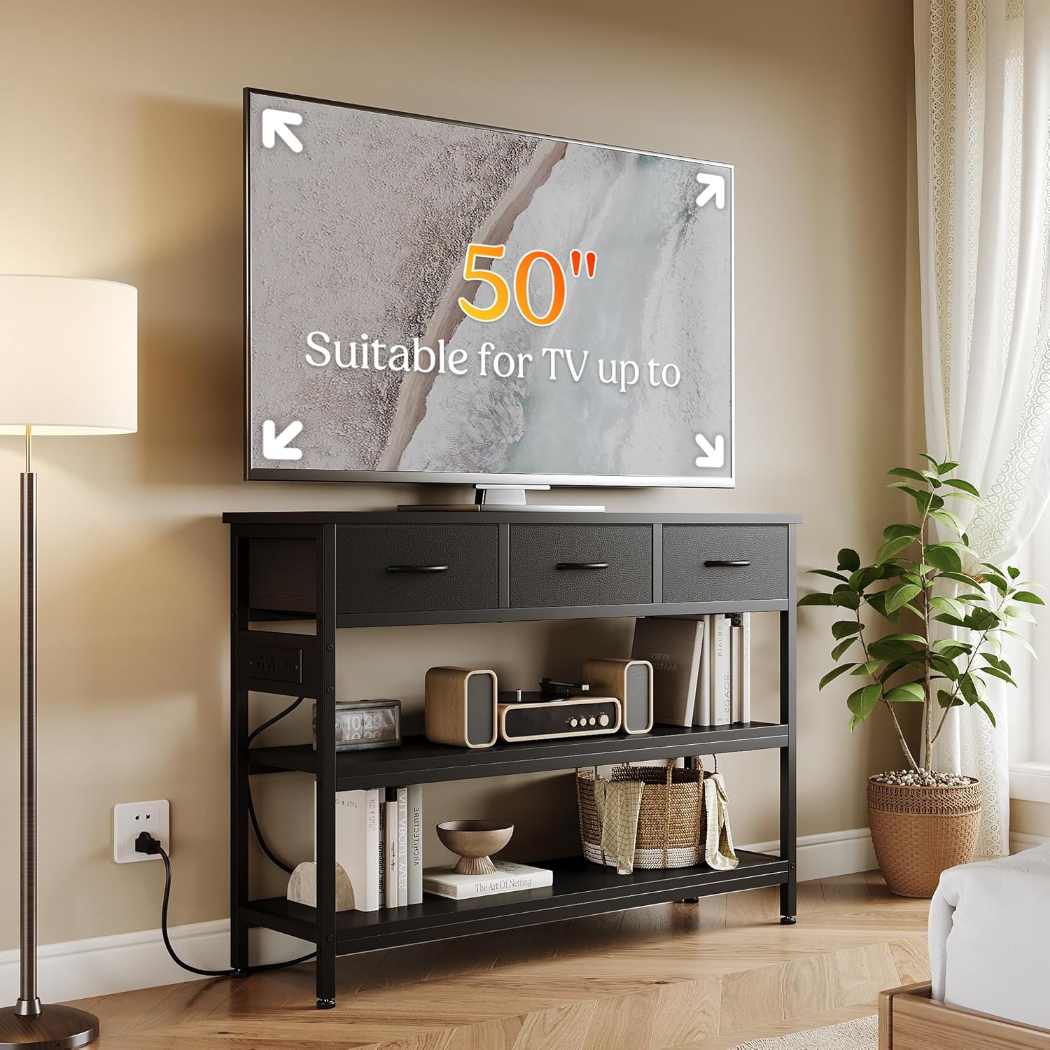 - Console Table with Storage: The entryway table comes with 3 fabric drawers to "keep clutter away". Great for storing goodies like keys, hats, gloves, cookbooks, remote controls and extra cables etc