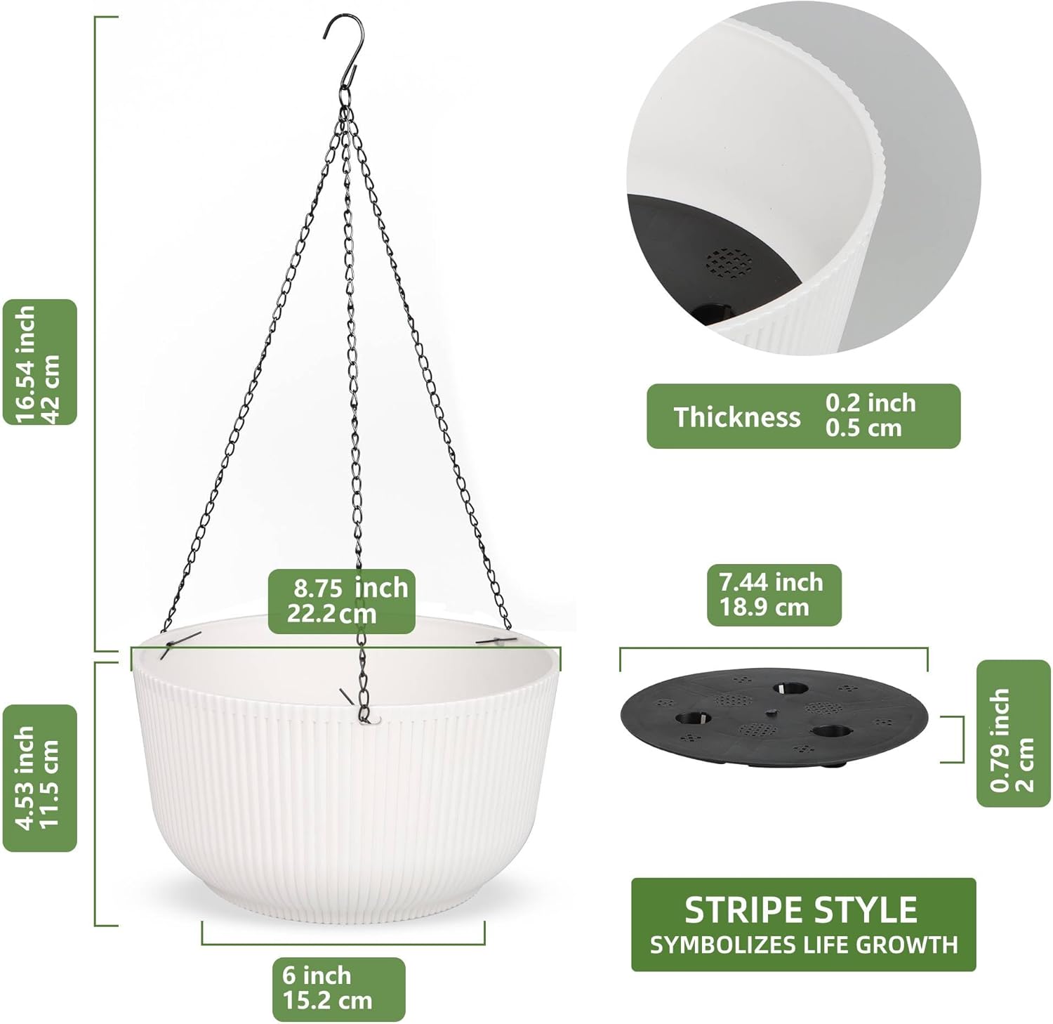 Dexceder 8.75 Inch Self Watering Hanging Planters Indoor Outdoor, Thickened Hanging Basket Flower Plant Pot (2 Pack, White)
