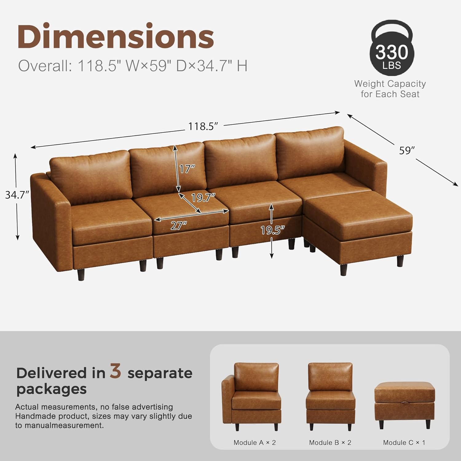- đź’ˇ Easy Assembly: This deep seat sofa is shipped in 3 separate packages that may arrive at different times. It includes step-by-step video guides and an easy-to-follow manual for a smooth 10-minute setup per module. If you have any questions or encounter any problems, please contact us. We are always here to help.