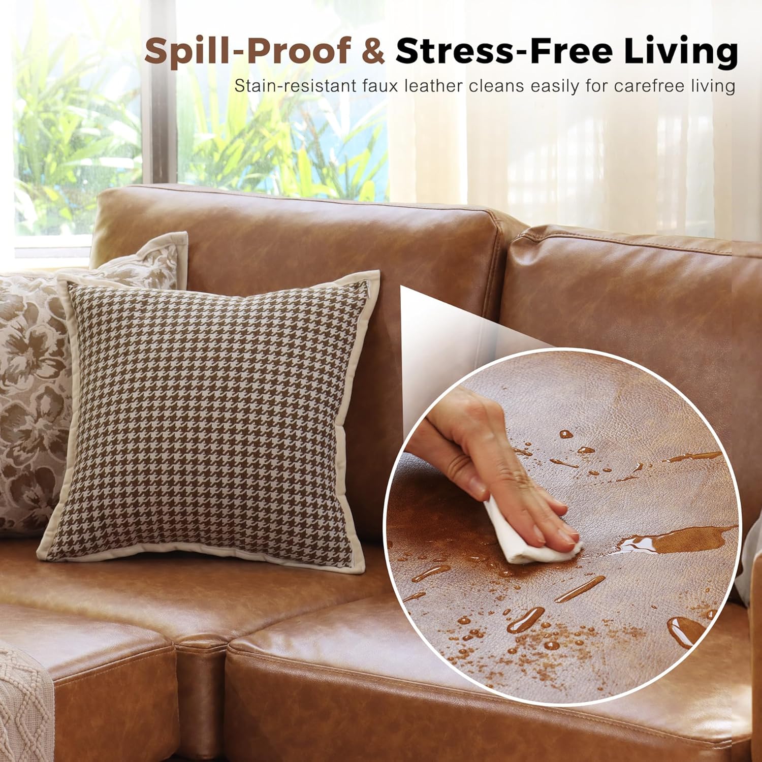 - đź’ˇEffortless-Clean Faux Leather Sofa: Waterproof and stain-resistant faux leather stays spotless. Wipe spills clean in 10 seconds with a damp cloth. The scratch-resistant textured surface feels soft and smooth, maintaining a stylish look even with pets and kids.