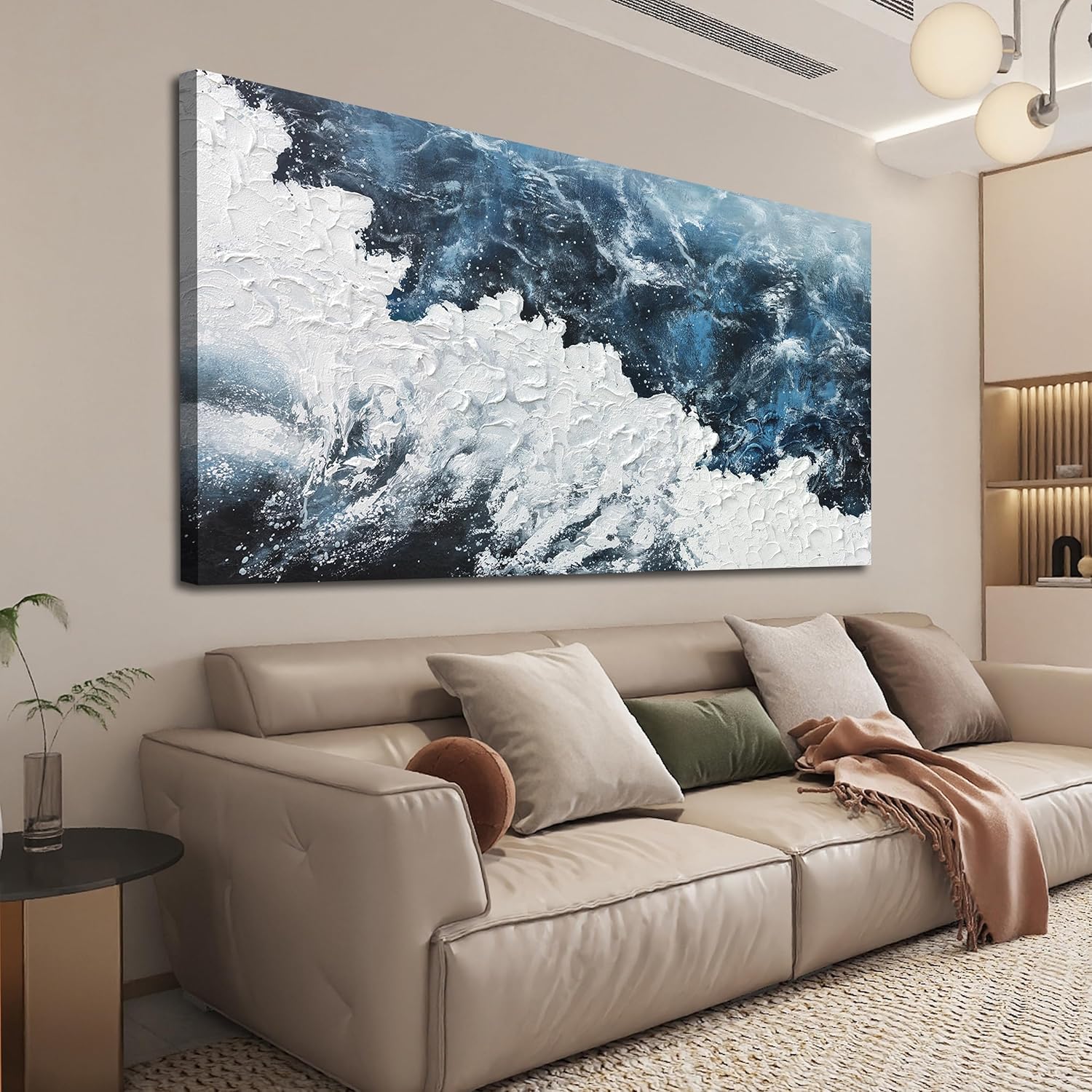 Abstract Wall Art Decor Abstract Canvas Wall Pictures for Living Room Large Blue White Wall Art Prints Beach Wave Artwork for Walls Coastal Modern Wall Art Decorations Home Office Wall Art Decor 24" X 48"