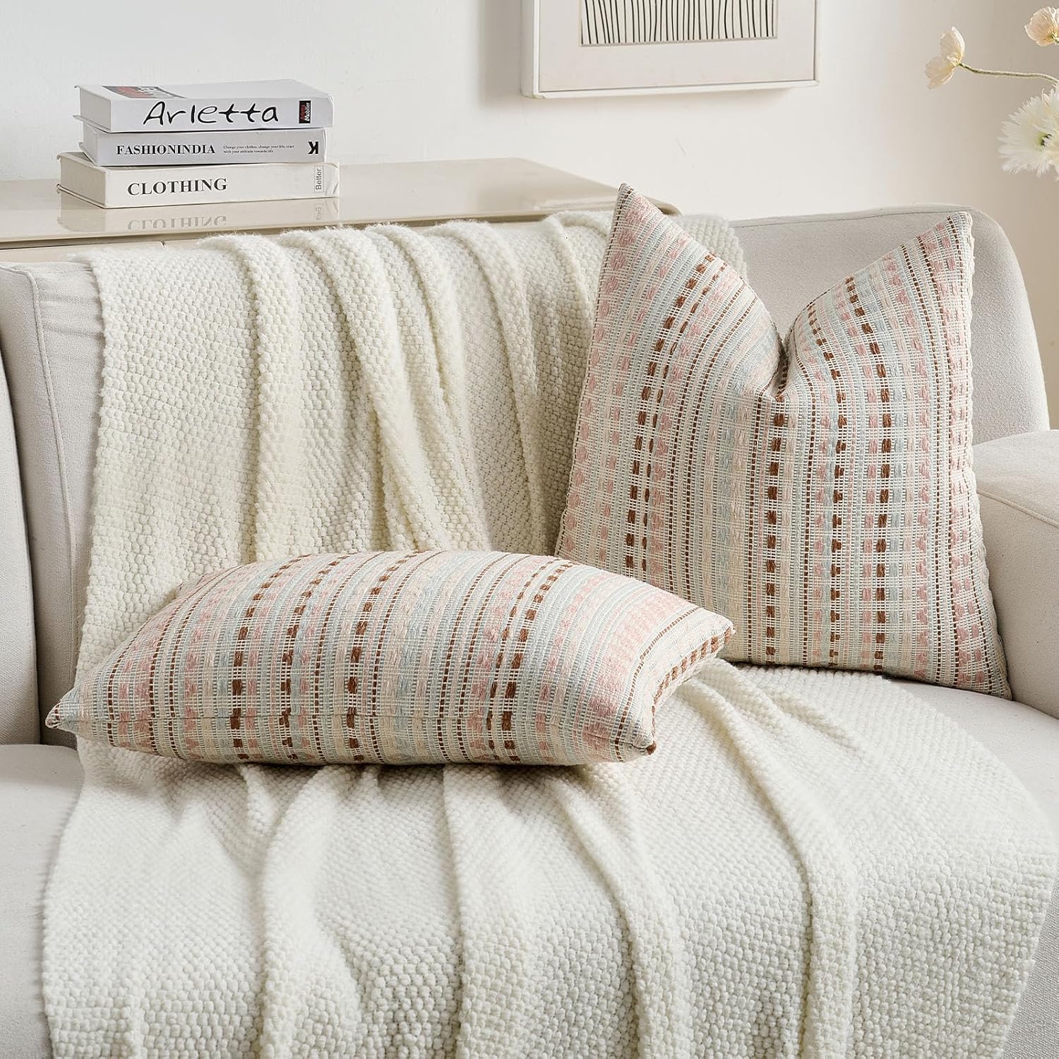 FUTEI Pink Blue Decorative Throw Pillow Covers 20x20 Inch Set of 2,Soft Cozy Chenille Jacquard Textured Cushion Case,Boho Home Decor for Couch Bed Living Room