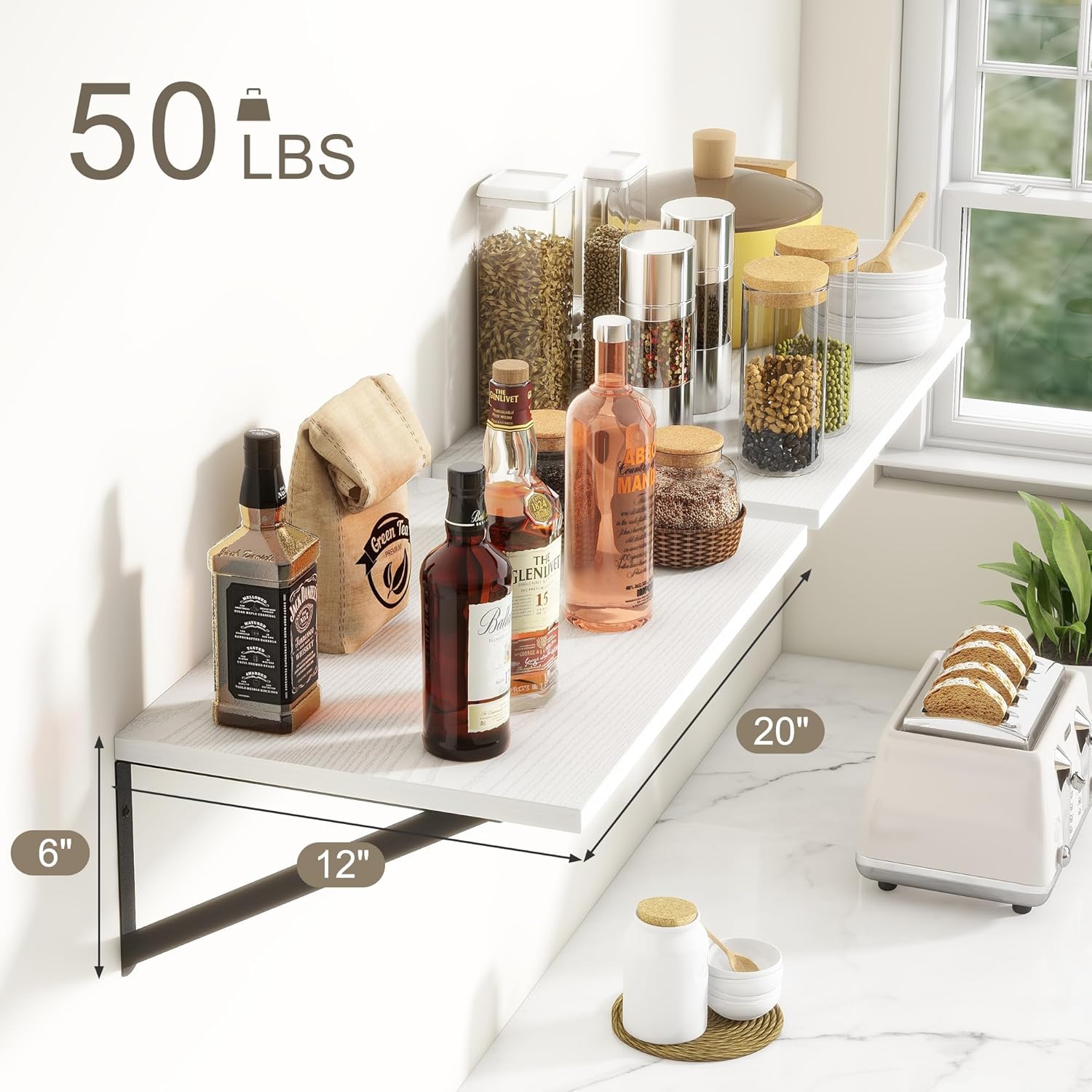 Fun Memories 20 Inch Floating Shelves for Wall, White Bathroom Shelves Set of 2, 12 Inch Deep Wall Shelf for Bedroom, Kitchen, Large Home Decor Shelves Farmhouse Storage Shelf