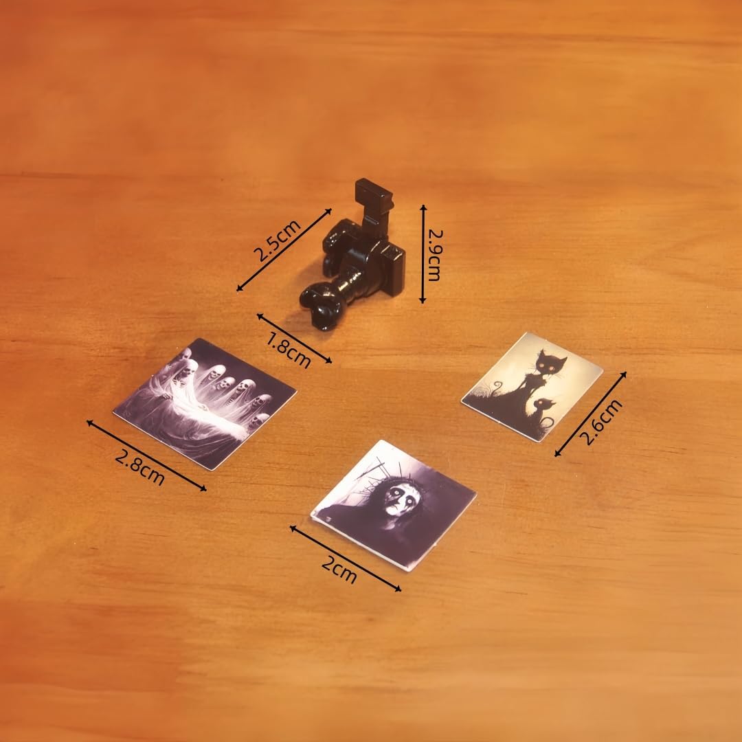 - Centerpiece Miniature DSLR Camera Prop: Features a realistic, miniature black DSLR camera (perfect 1:6 scale detective or paranormal investigator prop) plus dozens of unique miniature darkened horror posters & abstract charcoal art pieces.