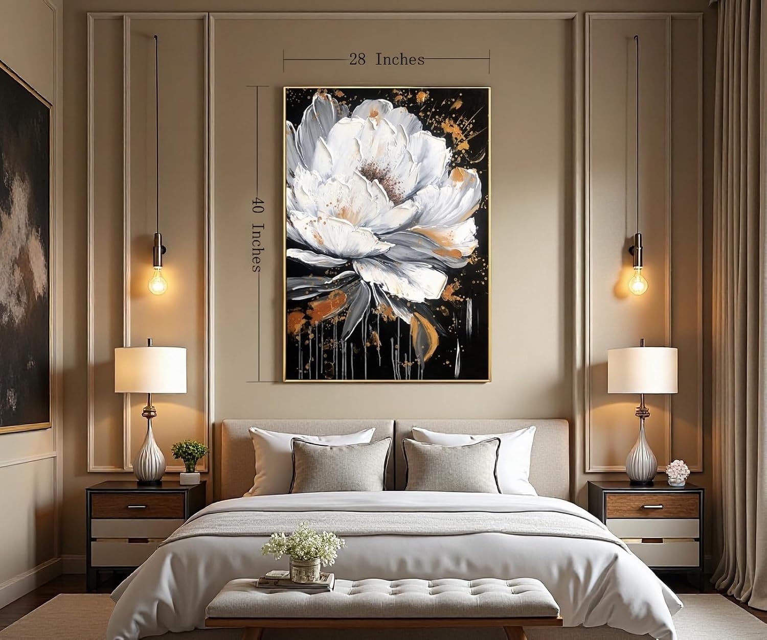 - SIZE OF FLOWER WALL ART: overall size:28x40inch x1pc,Total 1pc a set;Color:White,Black,Grey,Golden.