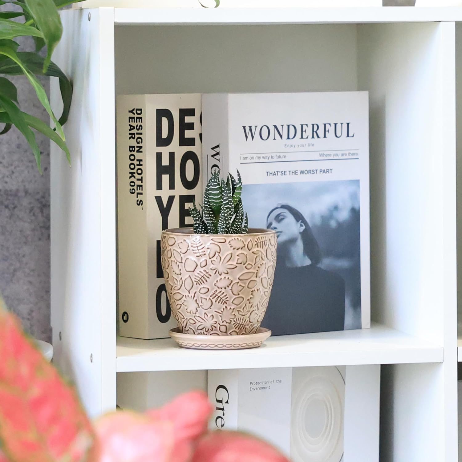 - Thoughtful Gift for Plant Enthusiasts:The Ceramic Plant pots with Drainage Hole and Saucer for plants indoor Designed with charming leaf , flower, and plant motifs, these planters make excellent gifts for plant lovers. Suitable for occasions such as birthdays, anniversaries, housewarmings, Thanksgiving, Christmas, and more.