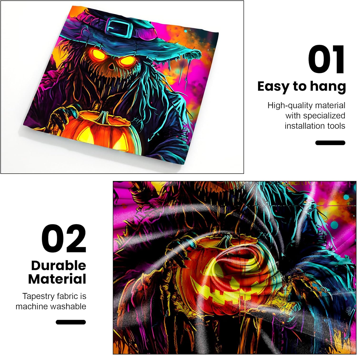 AOHMPT Glow-in-the-Dark Halloween Tapestry - UV Reactive Black Light Wall Hanging Decor for Spooky Parties, Bedroom, Living Room (Scarecrow-Pumpkin, 59" L x 51" W, Unframed)