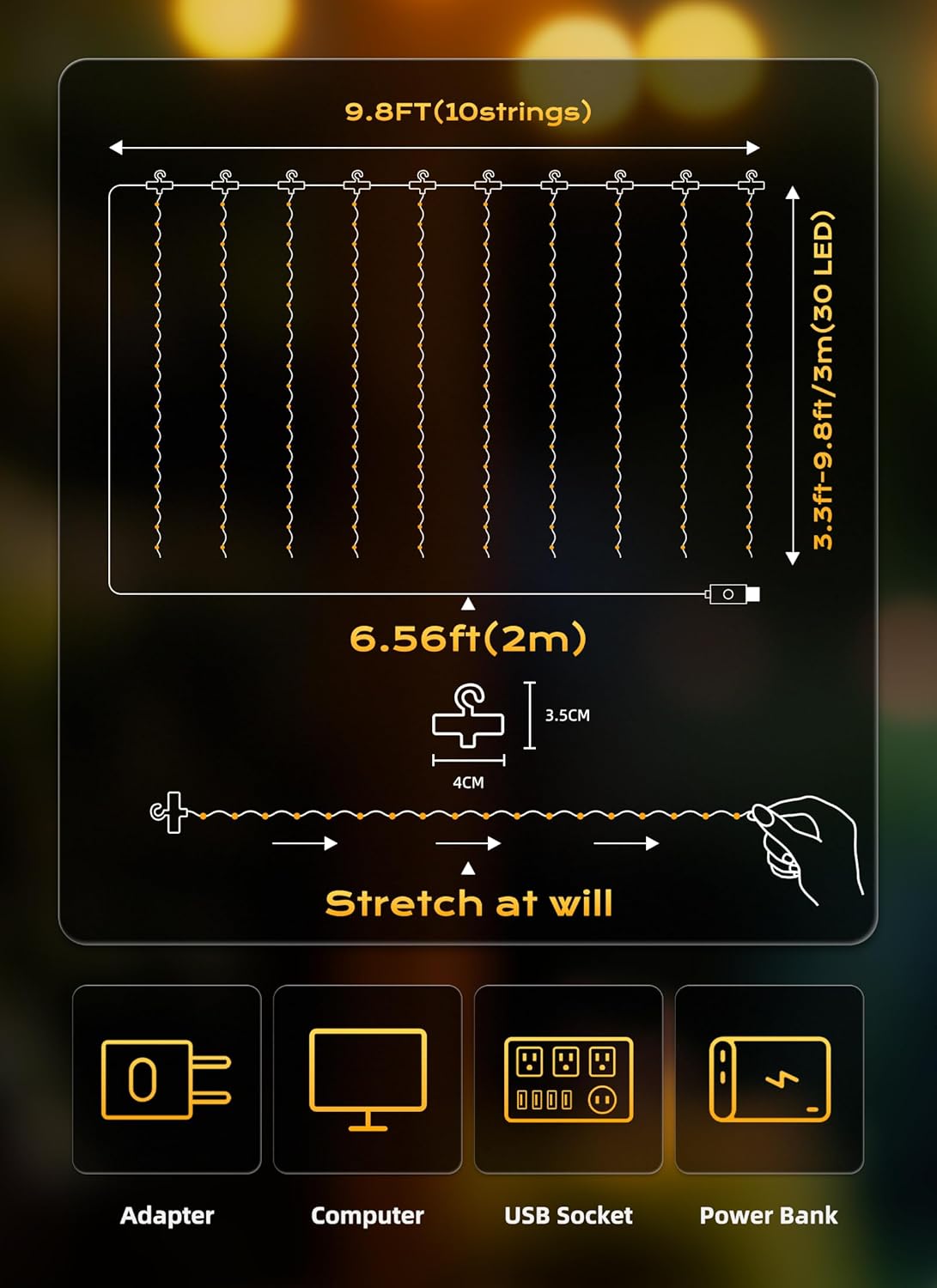 - [Safety & Decoration] Operated with 5V low voltage, our fairy curtain lights glow with low heating, and it is safe to touch; hanging lights can be safely hung on the curtains or on the wall. It is a wonderful decor for dorm, college, bedroom, party, birthday, wedding, Christmas, New Year, indoor, outdoor, classroom, room,dorm, ornaments