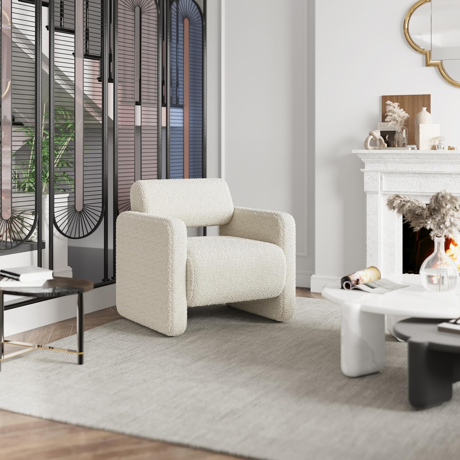 Accent Chair, Modern Boucle Fabric Armed Chair, Comfortable Single Sofa Chair for Living Room, Solid Wood Frame, Comfy Side Chair for Bedroom, Office, Reading (Beige)