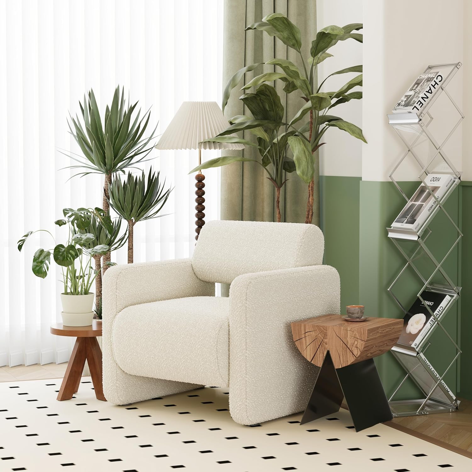 - 【Versatile Accent for Any Room】 This boucle accent chair with armrests is the perfect solution to define your décor. Its compact yet impactful design makes it an ideal fit for multiple spaces: as a stylish accent chair in your living room, a cozy seating solution in your bedroom, a comfortable guest chair in your office, or a welcoming seat in a reception area.