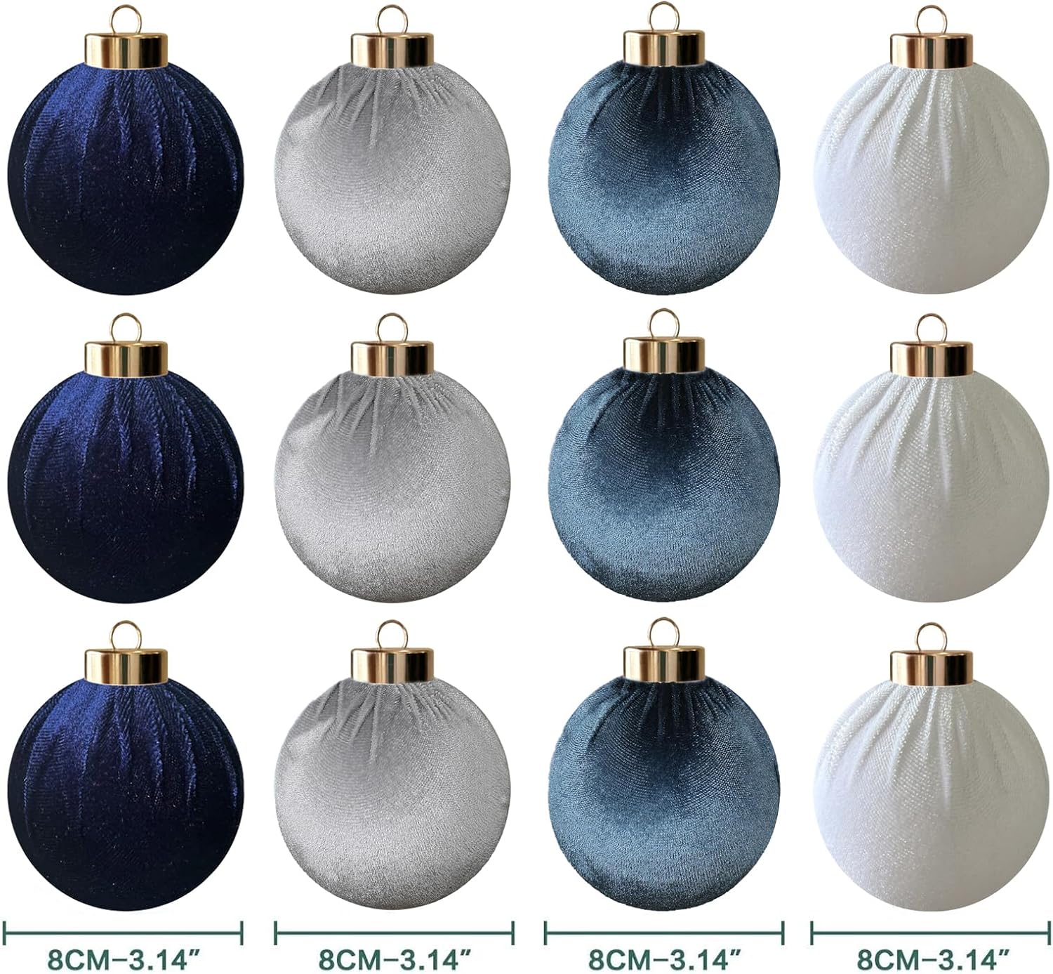 12Pcs Velvet Christmas Ornaments Balls,Blue Christmas Tree Decoration Shatterproof Ball with Hanging for Party Decor Multicolor Dusty Blue 80mm/3.15in