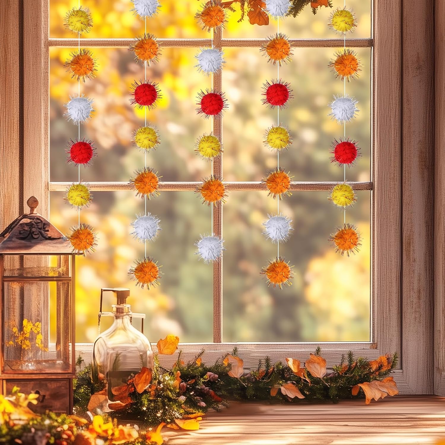 - Autumn Colors: New color scheme of glitter felt ball garlands, each felt ball is carefully selected. Unlike ordinary products in the market, our felt ball string comes with gold wire, bringing warmth and happiness to your autumn party