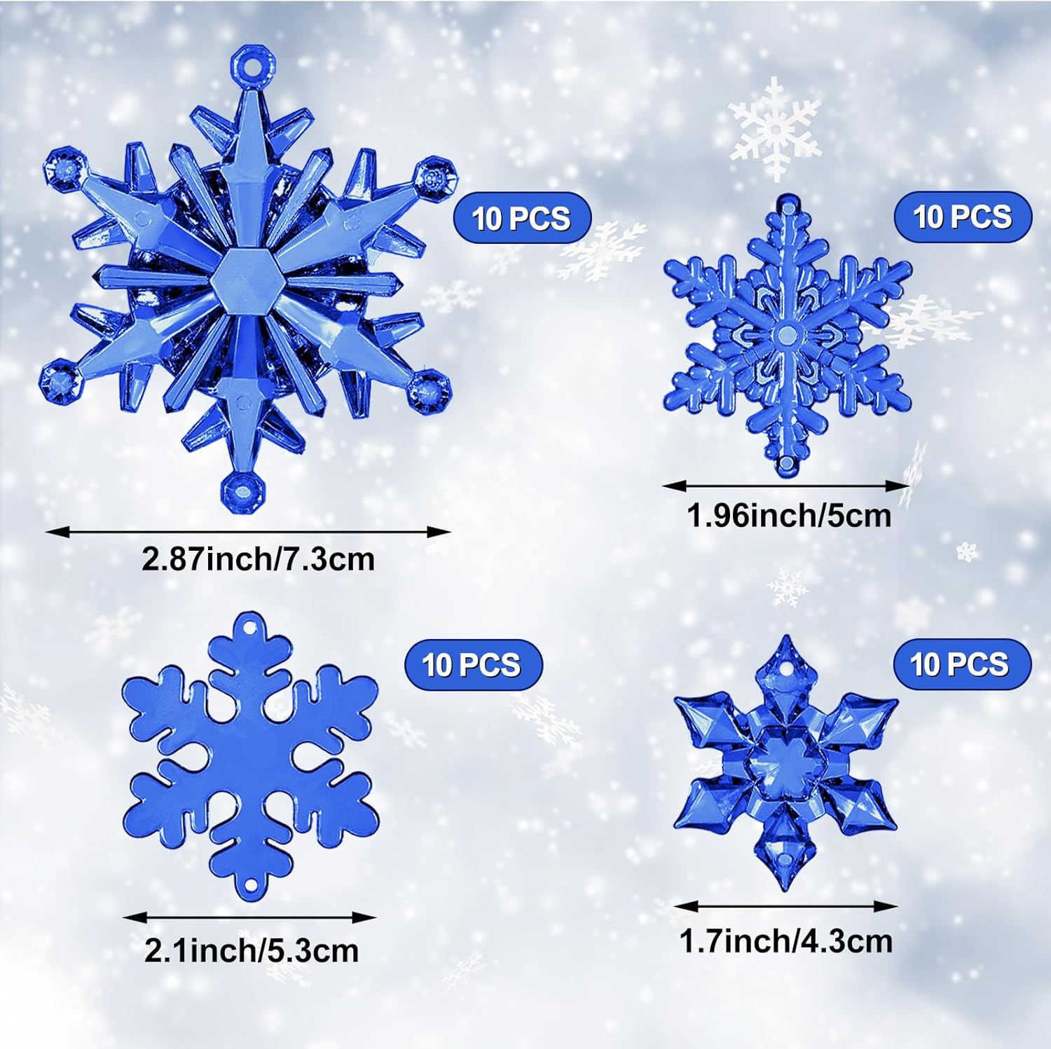 - Enough styles and amounts: we will give you 40 pieces of snowflake decorations in 4 styles, these styles and amounts are enough to meet your Christmas and daily decoration demands, also enough for you to share them with your friends