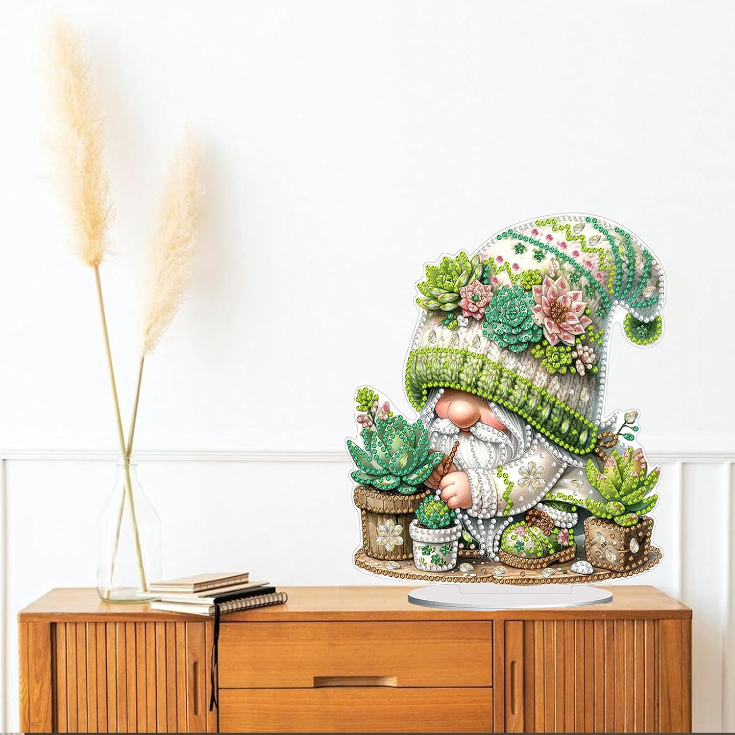 Diamond Painting Kits for Adults Beginners, 5D Full Drill Dwarf Succulents Crystal Art Desktop Ornament, DIY Single Sided Home Office Desk Decor, Creative Craft Gift Set with Tools