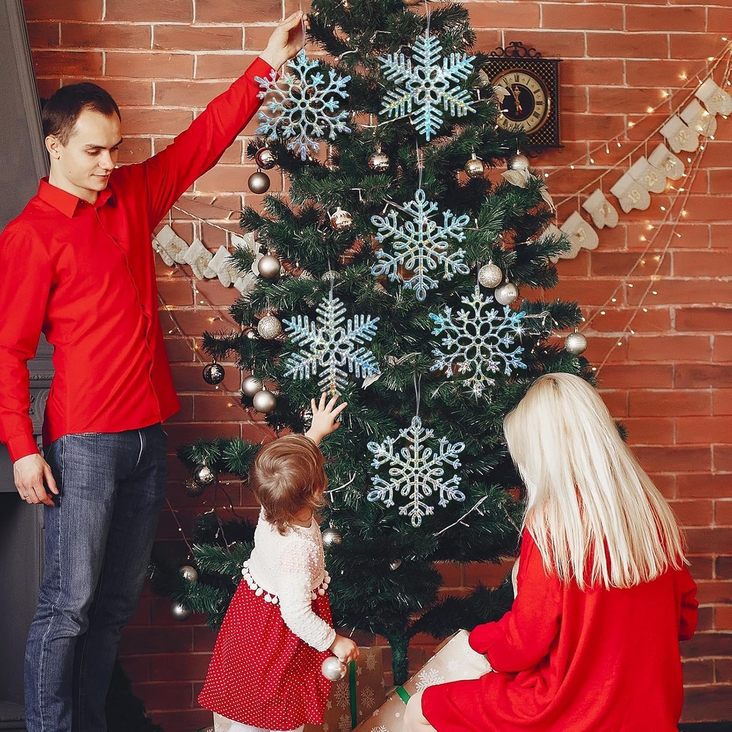 - Easy to Hang & Use:Each giant snowflake ornament has a hole or hollow design at the top for easy hanging with the string provided. Come and hang these glitter snowflakes on your Christmas trees, walls, ceilings, windows, fireplaces, porches, doors, and more to add sparkle to your winter home decorations