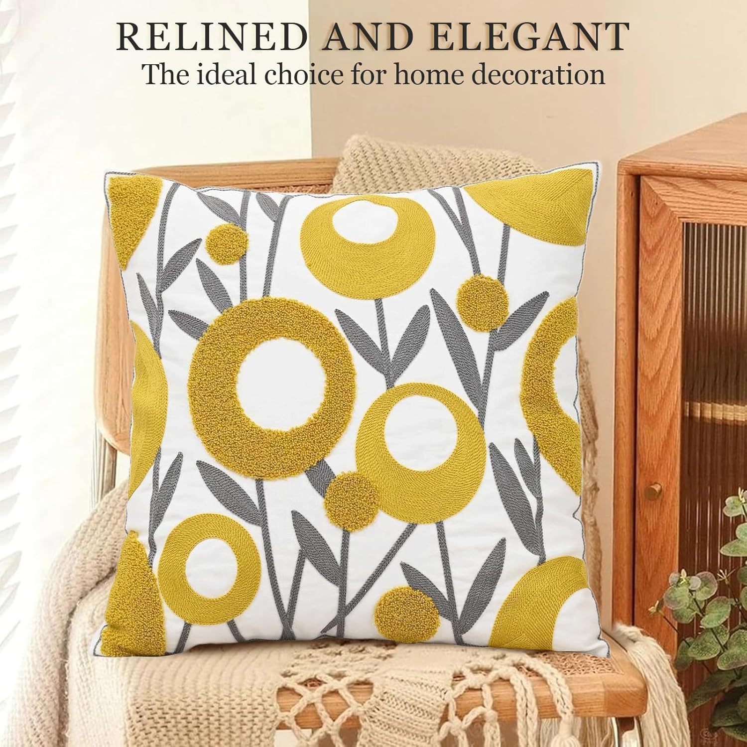 Embroidered Throw Pillow Cover Farmhouse Aesthetic Design Cushion Covers Spring Woven Floral Pillowcase for Living Room Bedroom Sunny Petals
