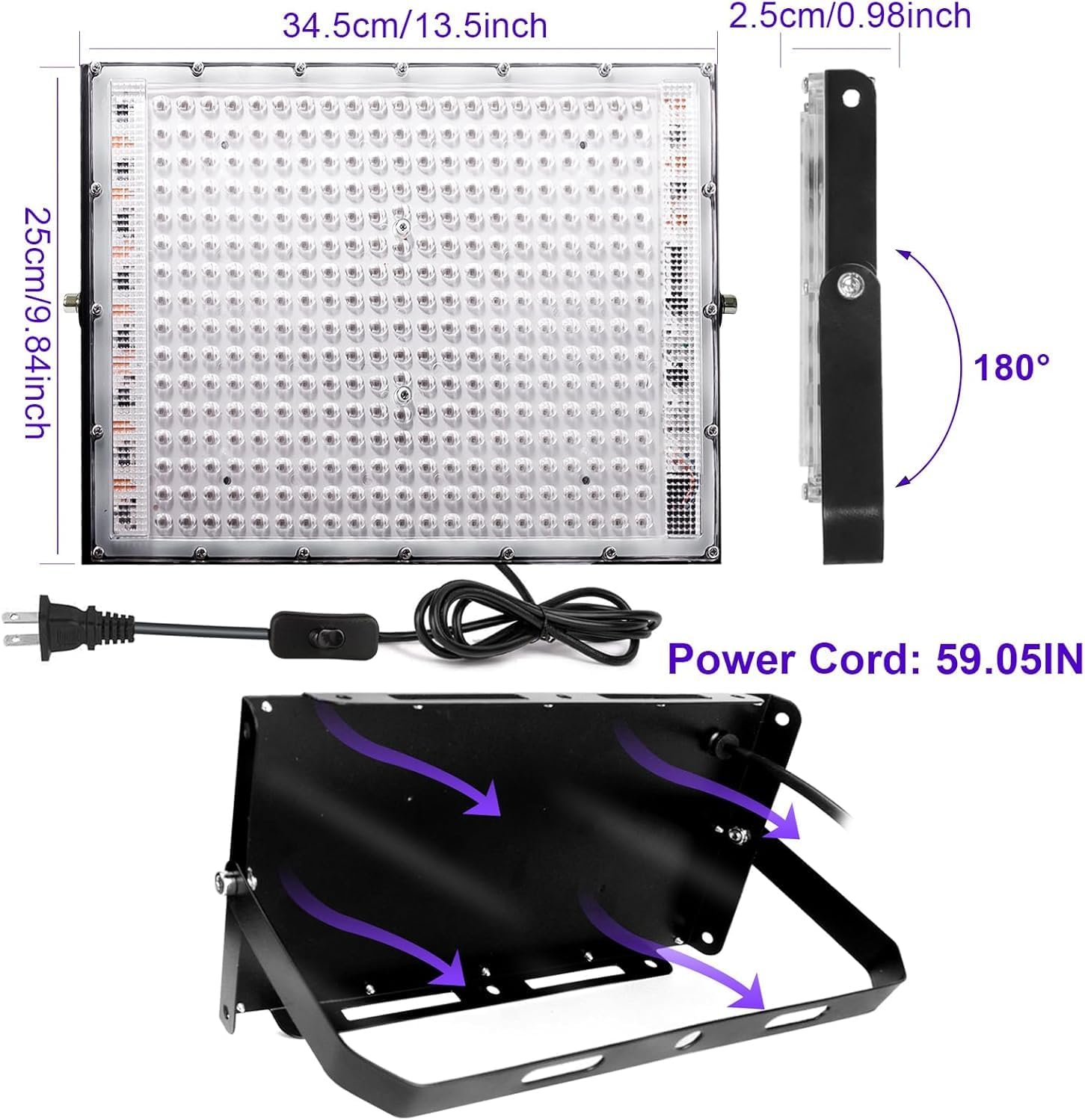 - 【120°reflective shell】Our 300W black light is equipped with a 120° ultra-high reflectivity reflector, which improves the efficiency of LED, reflects most of the invisible bulb, and projects with a wide angle to cover more areas, which is convenient for you to unfold in the dark activity.