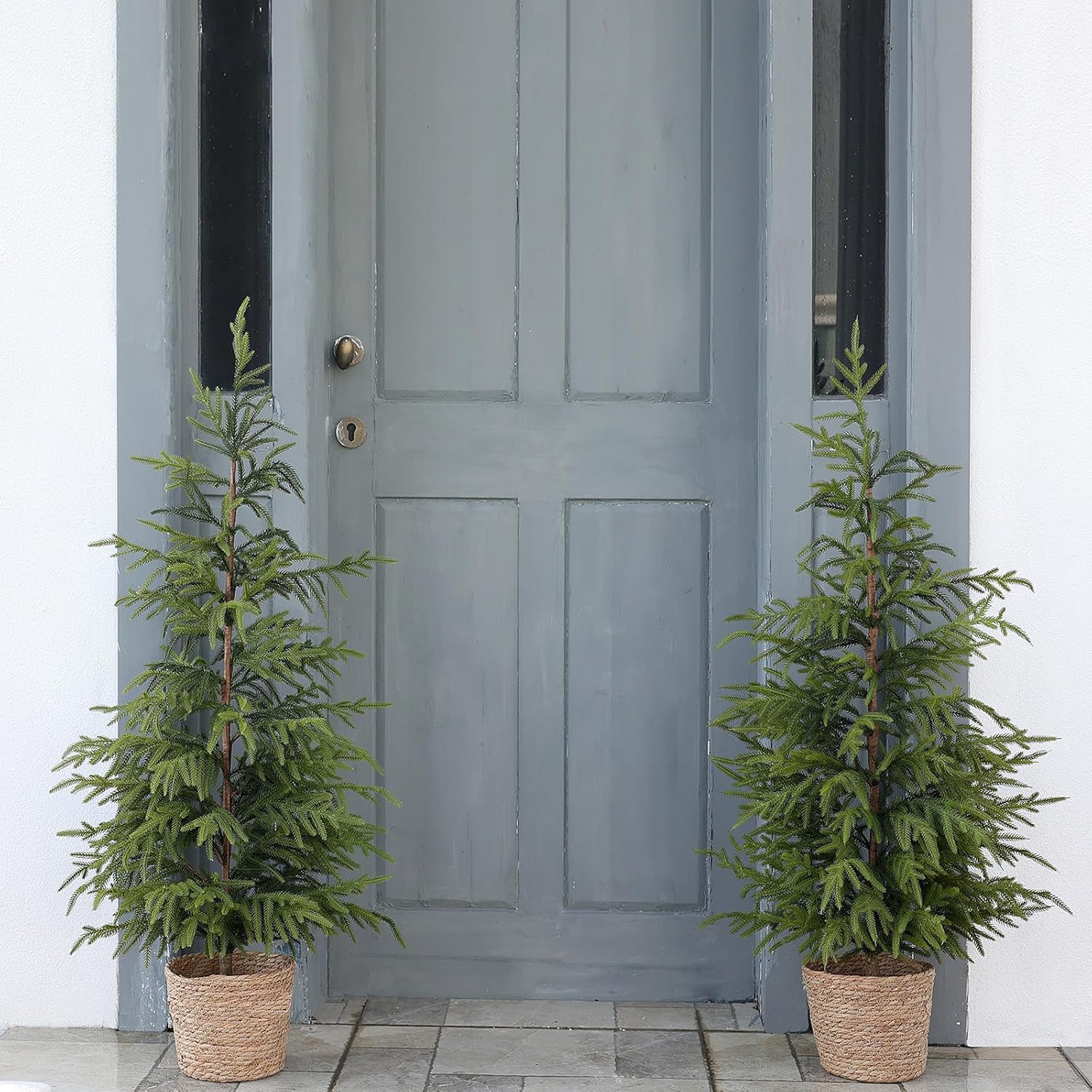 4ft Christmas Norfolk Pine Tree Artificial Christmas Tree Faux Potted Plants for Front Porch Christmas Indoor Outdoor Decor(2 PCS
