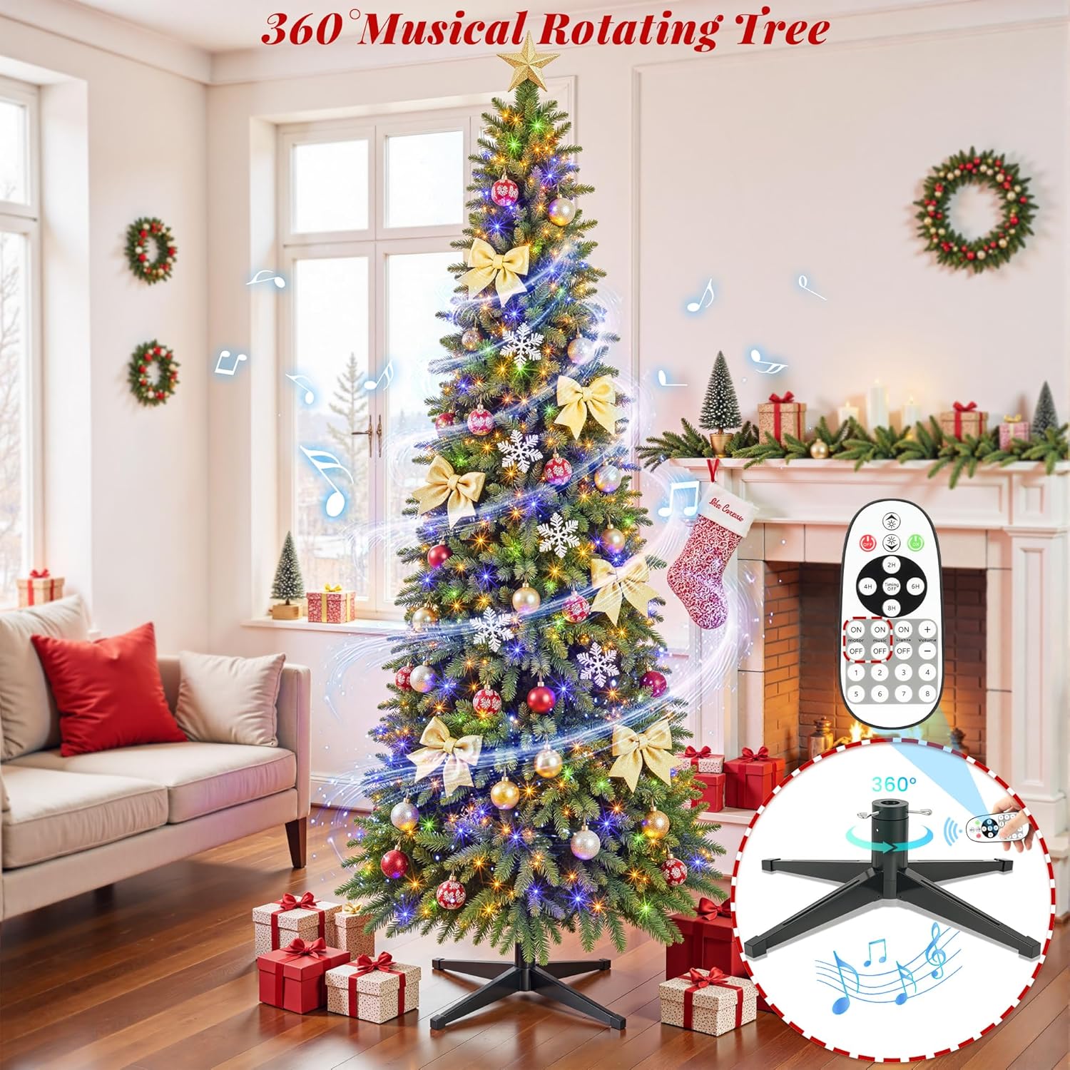 6.5ft Slim Pencil Christmas Tree Pre-lit, Remote Control, Rotating & Foldable Stand, RGB & Warm White Light for Home Decor