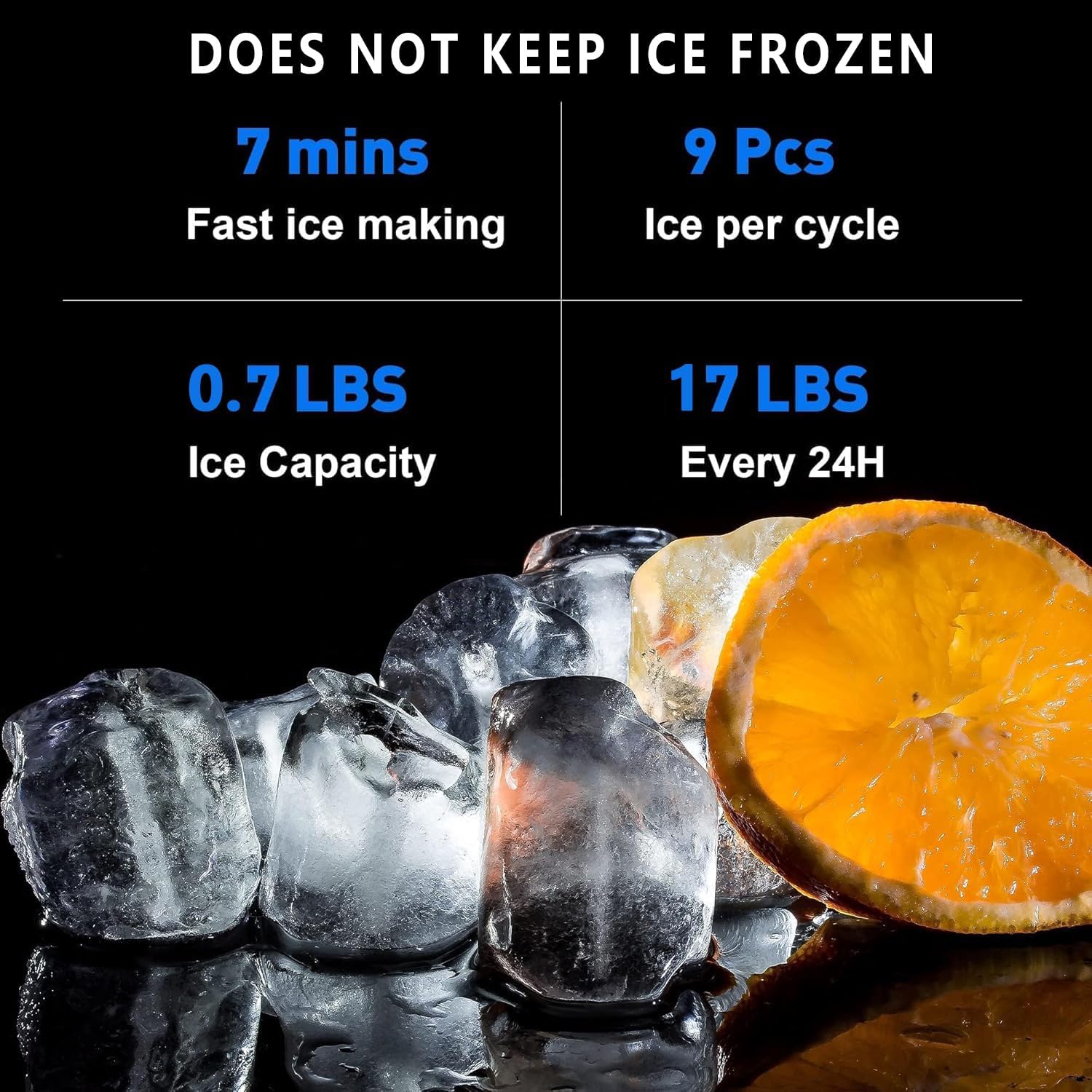 - BUILT-IN ICE MAKER: This machine makes its own bullet-shaped ice, and keeps it stored in an internal storage container ready to be dispensed instantly. It can store up to 0.65lb of ice but makes up 17.5 lbs of ice daily.(DOESN'T KEEP ICE FORZEN)