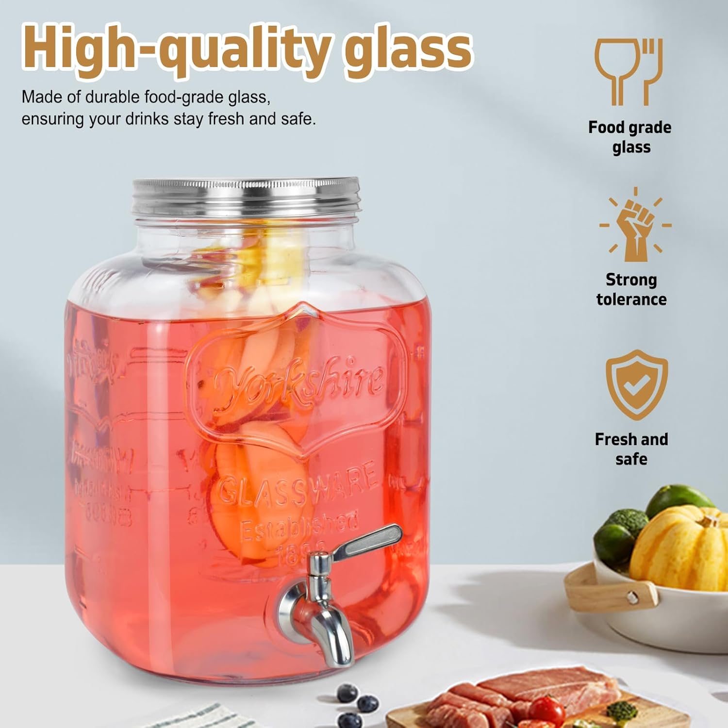 DD&HAPP Gallon Glass Drink Dispensers For Parties 2PACK.1.5Gallon Beverage Dispenser,Glass Drink Dispenser With Stand And Stainless Steel Spigot 100% Leakproof.Lemonade Dispenser With Ice Cylinder.