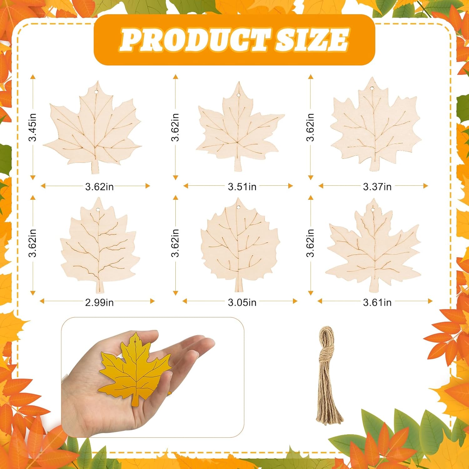 - Product Includes: 6 kinds of maple leaves-shaped wooden pieces, 4 pieces of each kind, with 24 hemp ropes.