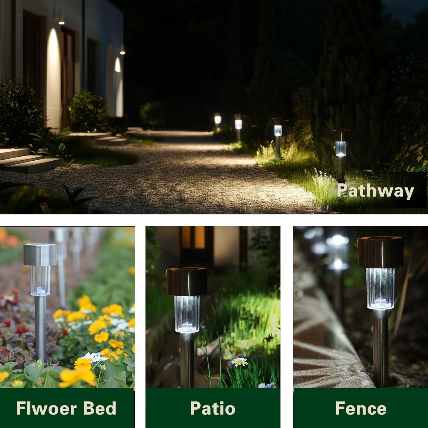 - Sleek & Durable Stainless Steel Design These 1.85" diameter × 12.2" height solar lights feature a modern stainless steel body—rust-proof, weather-resistant, and perfect for lining pathways, garden borders, or driveways. The 8-pack lets you illuminate large areas with minimalist elegance.
