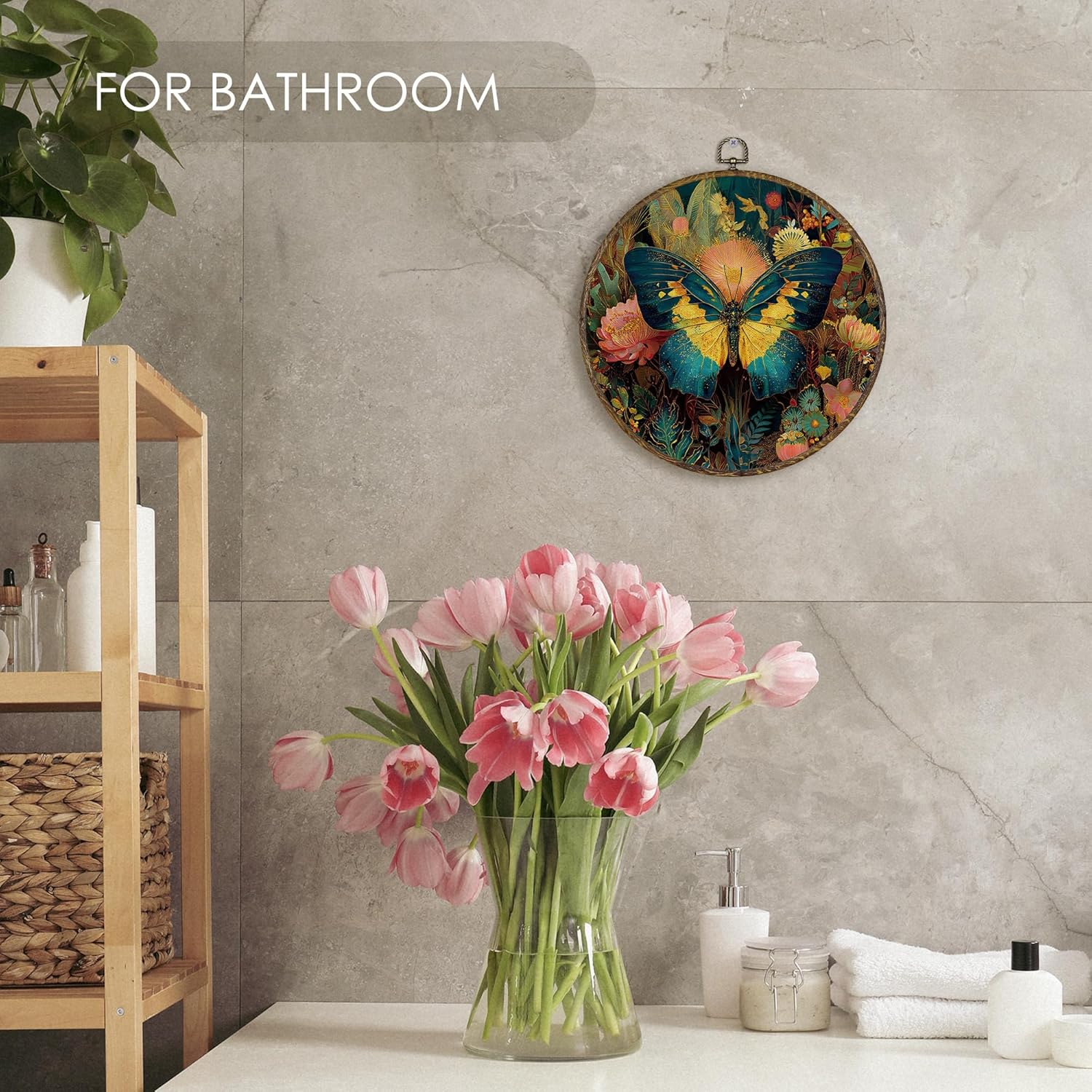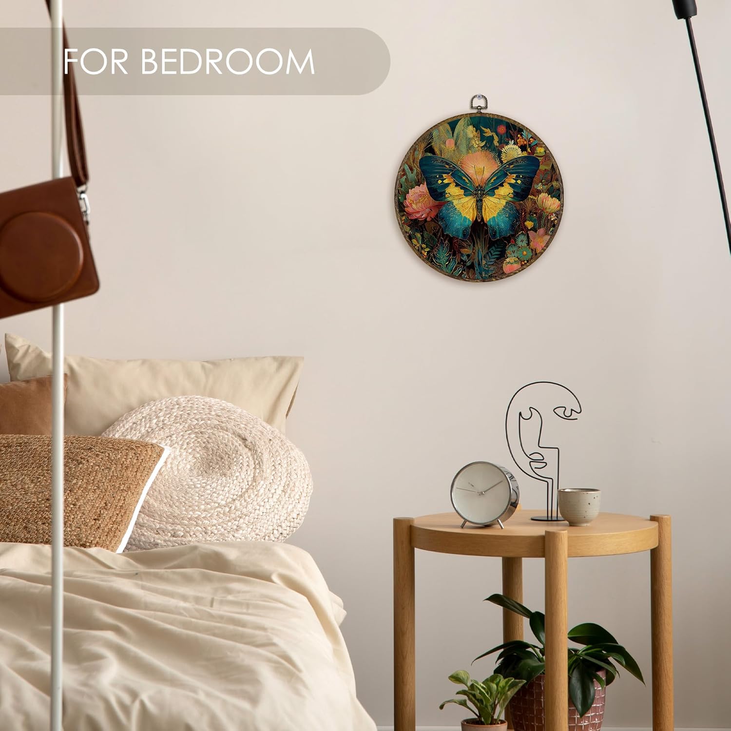 Fewgb Vintage Moody Butterfly Round Wall Art Decor Framed for Bedroom Living Room Bathroom, Dark Cottagecore Academia Canvas Wall Art Prints Picture, Gothic Hanging Room Decor Artwork 10x10