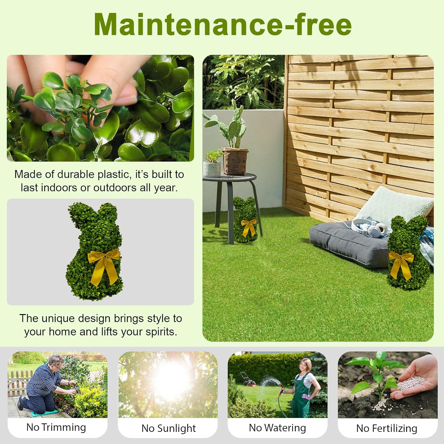 - ăNo MaintanceăEnjoy the beauty of nature without the hassle. Our artificial boxwood topiary trees require no watering or pruning, making them ideal for busy individuals.